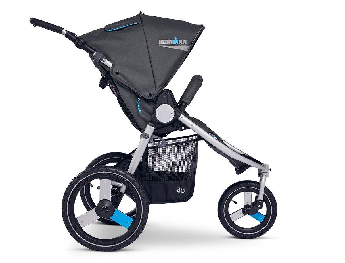 Keep going strong. Speed combines performance and sustainability. It is a purpose-built running companion equipped with the innovative front wheel Speed3 Steering: run, jog or walk mode. It comes complete with extra reflective elements so you can get out whenever life calls for adventure. Responsibly made and manufactured. Features: All-wheel suspension, air-filled tires (16" rear, 12" front) ; Speed3 Steering: 360 swivel, partial swivel, locked ; Ergonomic handle trigger release with one-step fold & standing stow ; Extra reflective elements ; Spacious canopy, ample sun coverage UPF 45+ ; Eco checklist: PFAS free durable water repellent ; Eco fabric made from 100% recycled PET ; Black colorway uses innovative solution dye process that conserves approximately 25-40 gallons of water per stroller ; 25% of plastic frame components sourced from recycled fishing nets ; The design for the Supernova, the limited-edition colorway, uses a combination of current and past colors to upcycle overstock fabric (all PFAS-free) ; Plastic-free Packaging ; Technical Specs Recommended Use: Birth (with Bassinet or Car Seat), or 6 months + with stroller seat to 65 lb. ; Speed3 Steering System: Locked for running/training; Partial swivel for jogging and all-terrain trails; Full swivel for city and everyday use; ; Join the elite athletes of the world with the IRONMAN Speed stroller by Bumbleride (special edition); Redesigned foot brake system; Redesigned bumper bar holster; Adjustable handle with TPR grip (PVC free) with safety strap; One step, ergonomic trigger release, compact fold with auto-lock; UPF 45+ canopies with pop-out extension for extra coverage + air vents ; Reflective canopy and footrest logos for added safety ; Eco-fabrics free from harmful chemicals including lead, PVC, fire retardants, phthalates and polyurethane foam (100% rPET + OEKO-TEX Standard 100 Certified) ; PFC free durable water repellent (DWR free of PFOA, PFOS & PFASs) ; Built in mesh storage pockets ; One-handed, backrest recline strap; Roomy, easy access cargo space with storage for air pump (included); All-wheel suspension with 16" rear wheels and air-filled tires ; 5-point breakaway harness with shoulder pads ; Machine washable seat and canopy fabric (all removeable) ; What's Included Air-pump ; Wrist strap; Foldable Bumper Bar ; Bell ;.