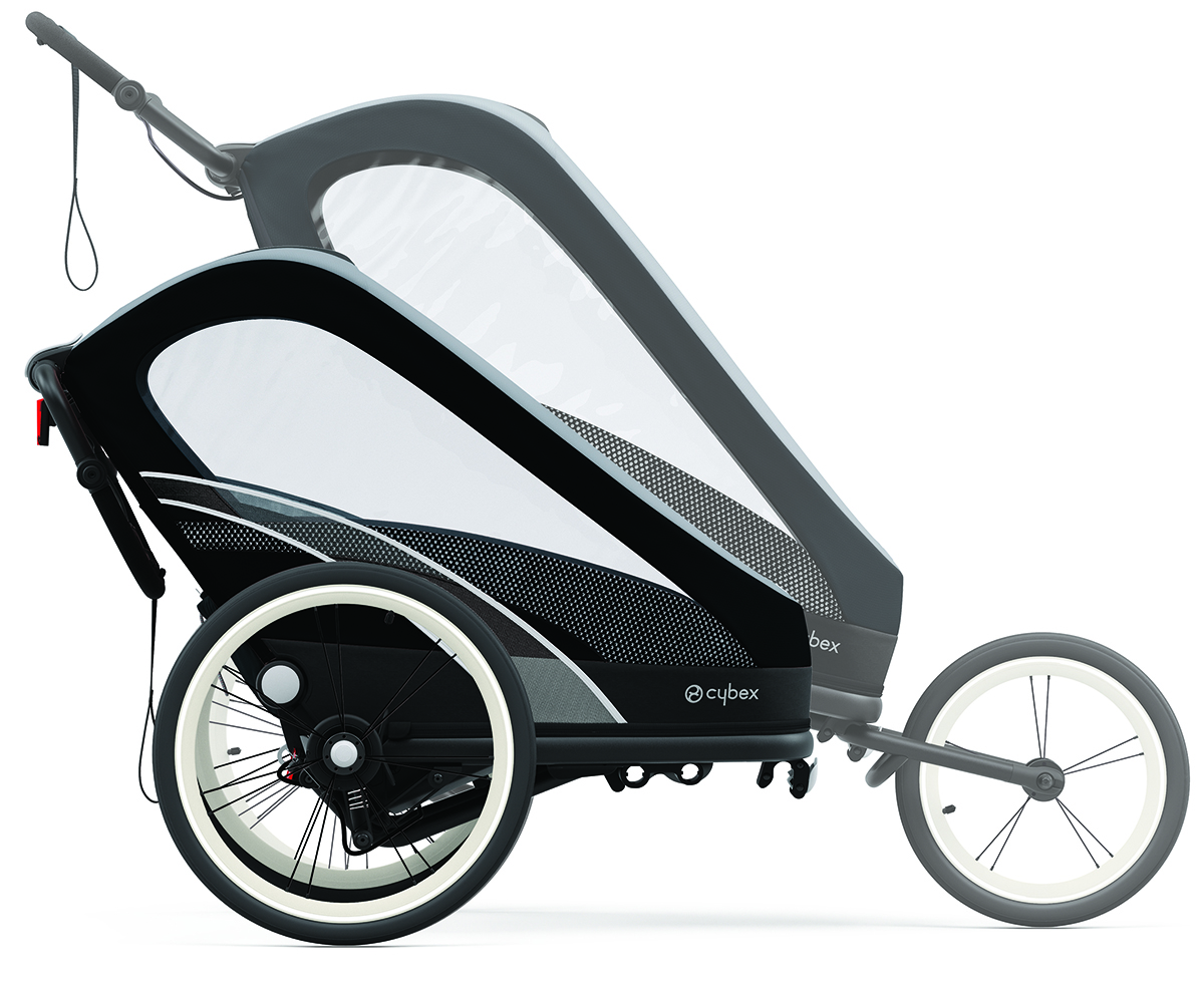 Designed for sport, the CYBEX ZENO multisport trailer gives you the revolutionary freedom to exercise in the way you've been waiting for-naturally and without limits. Its unique 4- in -1 multisport feature lets you enjoy being active in any season-whether you're jogging in the park, cycling in the city, or skiing through the snow. Features: 4- IN-1 MULTISPORT TRAILER: Designed for sport, the ZENO lets you take your little one along for all your outdoor adventures. Whether you're jogging, cycling or cross-country skiing, share your active lifestyle with your child while performing your best(sporting kits sold separately); ADJUSTABLE CABIN HEIGHT: The unique adjustable cabin height of ZENO lets you lower the center of gravity to get the best performance and safety out of all towing modes; COMPACT FOLD WITHIN SECONDS: For quick and convenient storage, the ZENO can be easily folded into a space-saving package. Additionally, all wheels can be easily removed with no tools required, allowing for an even more compact folded size; REAR SUSPENSION AND AIR-FILLED TIRES: Air-filled tires keep the ride smooth while soft rear suspension absorbs all the bumps of the road-greater freedom for you and exceptional comfort for your child; ULTRA COMFORTABLE PADDED SPORT SEAT: You child will stay comfortable, protected and supported with the ZENO's contoured sport seat featuring soft and removable padding. The backrest supports an upright sitting position, while the padded 5-point harness secures your child; ADJUSTABLE, SILICONE HANDLEBAR: The rounded handlebar shape is ergonomically designed for efficient steering and can be adjusted to fit your height. It can be steered with one hand, leaving your other arm free to swing naturally for effortless jogging. The silicone grip is not only slip-proof, but also shock-absorbing and comfortable to hold even during longer jogs; MULTISPORT ADAPTER POINT: The Multisport Adapter Point allows for a speedy and secure transition between the different sporting modes; HANDBRAKE: The handbrake helps you vary the speed to meet your pace; 360 _ VENTILATION: Breathable mesh around the cabin creates 360__ of air circulation to keep the interior cool and comfortable. UPF50+ materials, an adjustable sun shield and a rain cover also provide protection outdoors; TETHER STRAP: Attached to the handlebar for additional safety; REFLECTIVE DETAILS: Reflective details give you extra visibility during dusk or dawn. When illuminated, they help you stand out and stay safe whenever you choose to jog; CONVENIENT STORAGE OPTIONS: The back pocket is the perfect place to stow small items and includes a special compartment for your smartphone. Pockets in the cabin provide storage for your child's favorite toys; Only use in jogging mode with children at least 9 months old and who can sit up unassisted.; Available accessories: 2-in-1 cup holder, cycling hitch, thru axle, hands-free running kit, cycling kit, skiing kit; What's Included: Multisport trailer, seat pack and rain cover; Specifications: Measurements Assembled: 55"L x 27"W x 49"H; Measurements Folded (without wheels): 39.2"L x 22.8"W x 13.8"H; Weight: 27.6 lbs.; Multisport trailer seat can be used from 6 months to 55 lbs.; Only use in jogging mode with children at least 9 months old and who can sit up unassisted.;.