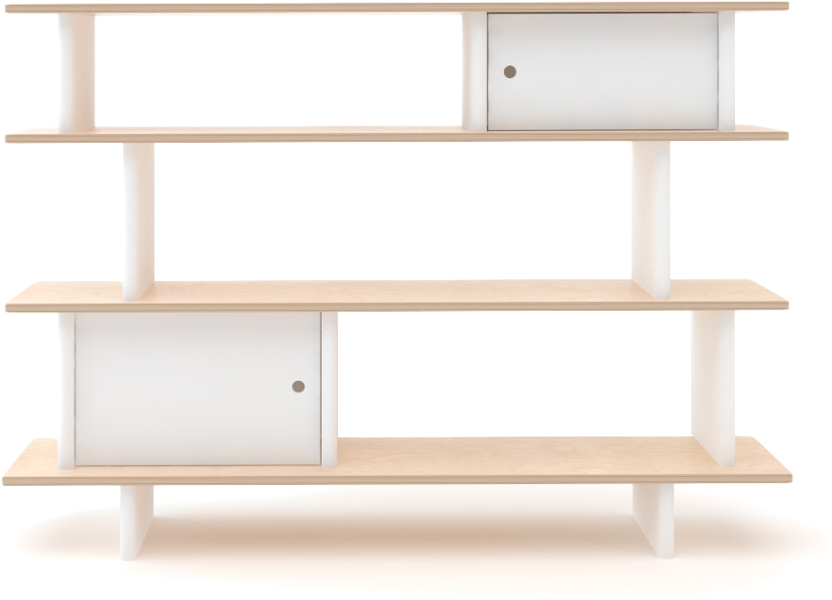 The Oeuf Mini Library offers stylish and practical storage for children?s rooms. Children will love its fun design and easy-to-reach height. Parents will love its sleek contemporary looks and sturdy construction. With four shelves and two storage spaces, the mini library is ideal for storing books and toys. This modern open unit is a smart storage solution you?ll appreciate for years to come. It?s even environmentally friendly, too. Available in white, with birch or walnut finished shelves.