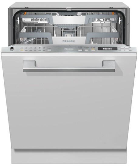 Fully Integrated Built-In Smart Panel Ready Dishwasher with 3D MultiFlex Cutlery Tray, AutoDos, WifiConn@ct, QuickIntenseWash, DirectSelect Controls, 43 dBA Silence Rating, EcoPower Technology, and ENERGY STAR Certified. Stress-free loading and ingenious adjustment options create space in the dishwasher even for small items. Short program: Best cleaning results for normally soiled dishware in 58 minutes. Ultra-quiet operation creates a peaceful kitchen environment even as it delivers powerful wash performance. Innovative water feed for rinsing with less water. Saving water and energy: Cleverly designed water supply reduces consumption. AutoDos with PowerDisk. WifiConn@ct - AutoStart with Miele@home. DirectSelect Controls. Pocket Handle. ExtraComfort Baskets. AutoOpen Drying. SaniWash - Sanitize cycle. ExtraClean & ExtraDry Options to customize wash programs. Delayed Start. Water Softener. ENERGY STAR Certified. Width: 23 9/16". Height: 33 11/16" - 36 1/4". Width: 23 5/8". Height: 33 3/4". Depth: 22 7/16". Maximum Water Temperature: Max 150F/65C (Cold or Hot). Fitting: Male 3/8" compression fitting. Water Pressure Range: 7.25 psi (0.5 bar) and 145 psi (10 bar). Length: 5 ft (1.5 m). Fitting: Female 3/8" compression. Length: 5 ft (1.5 m). Internal Diameter: 7/8" (22 mm). Electrical Requirements: 110V/120V, 60Hz, 15 Amps. Power Cord (Convertible to hardwire): NEMA 5-15 plug, 5 ft (1.52 m). Shipping Weight: 121 lbs. Shipping Width: 27 1/8". Shipping Height: 38 1/8". Shipping Depth: 26 3/8".