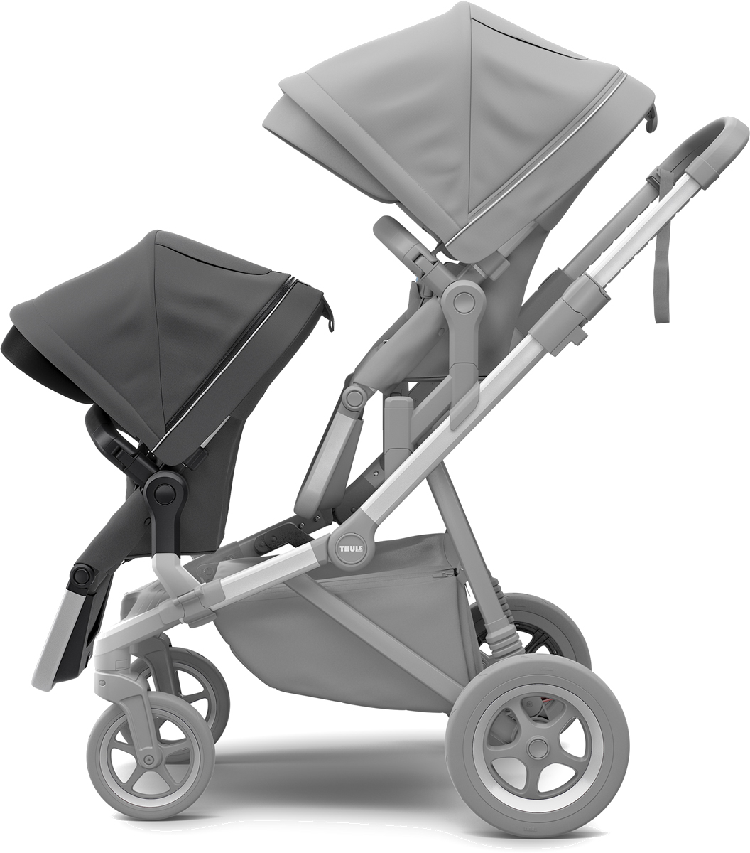 Comfortable and spacious seat that transforms your Thule Sleek into a double stroller. Ventilated canopy with peekaboo window and extendable sun visor gives your child a pleasant ride in any weather and provides UV protection (UPF 50+); Comfortable large seating area, with generous sitting height and footwell; Reversible seat for parent- or forward-facing position; Reclining seat in three positions for great comfort in both sleeping, resting, and upright position; Bumper bar that rotates to the side for easy seating of your child; Compatible with Thule Sleek; Includes upper and lower adapters;.