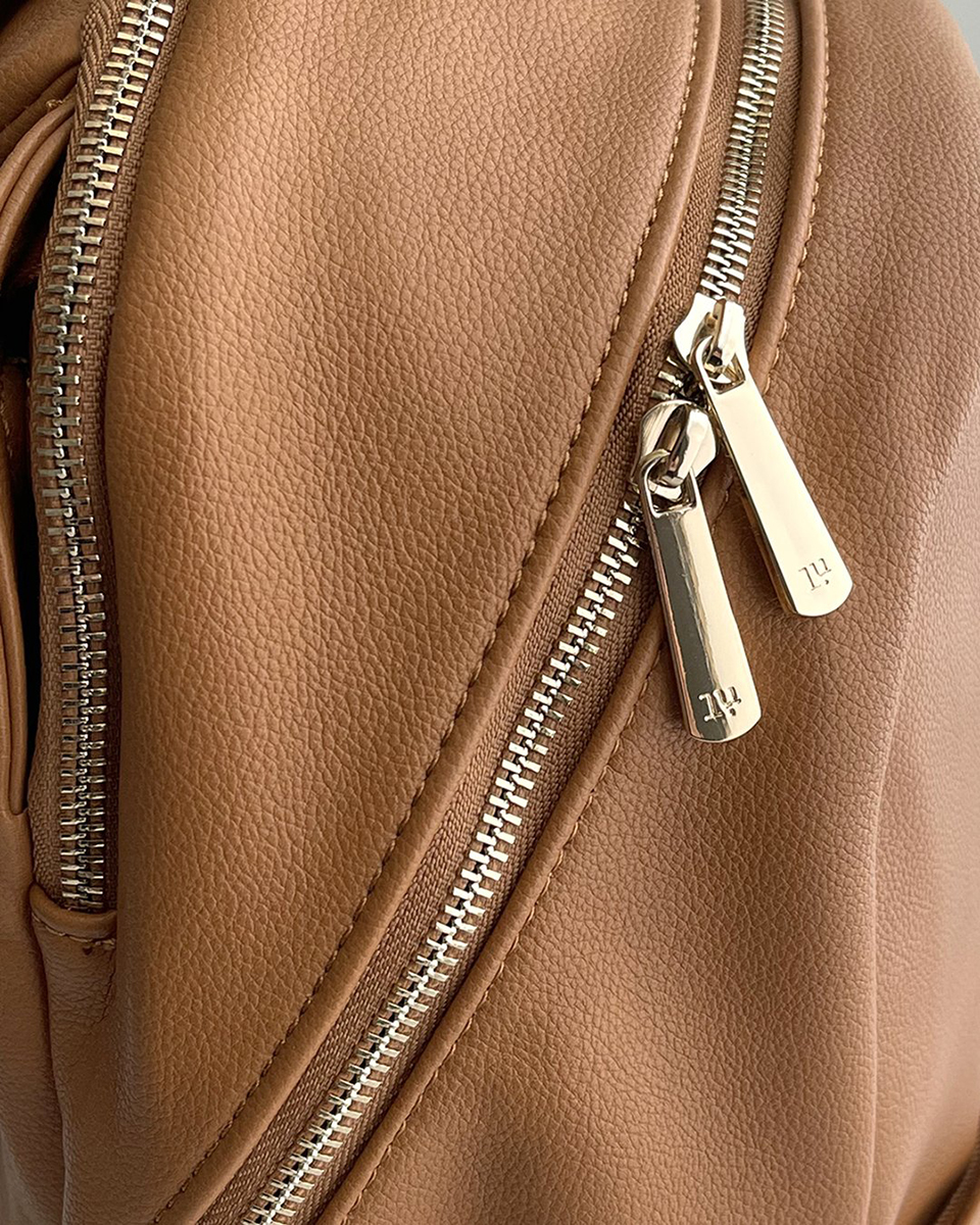 As spacious for your belongings as it is stylish on you. With two clever compartments - one for you and one for baby, customizable hardware to fit your taste, and a lightweight, ergonomic design to fit you just right, feel comfortable and put together no matter what comes your way. Made of premium vegan leather; Lightweight, durable design; Ergonomic fit for maximum carrying comfort; Separate storage for you and baby; 5 interior storage pockets & key leash; Soft-lined, protective tablet pocket; Two bottle pockets fit up to 32 oz.; Includes wipeable vegan leather changing pad; Sturdy base with protective feet; Wipes clean, inside and out;.