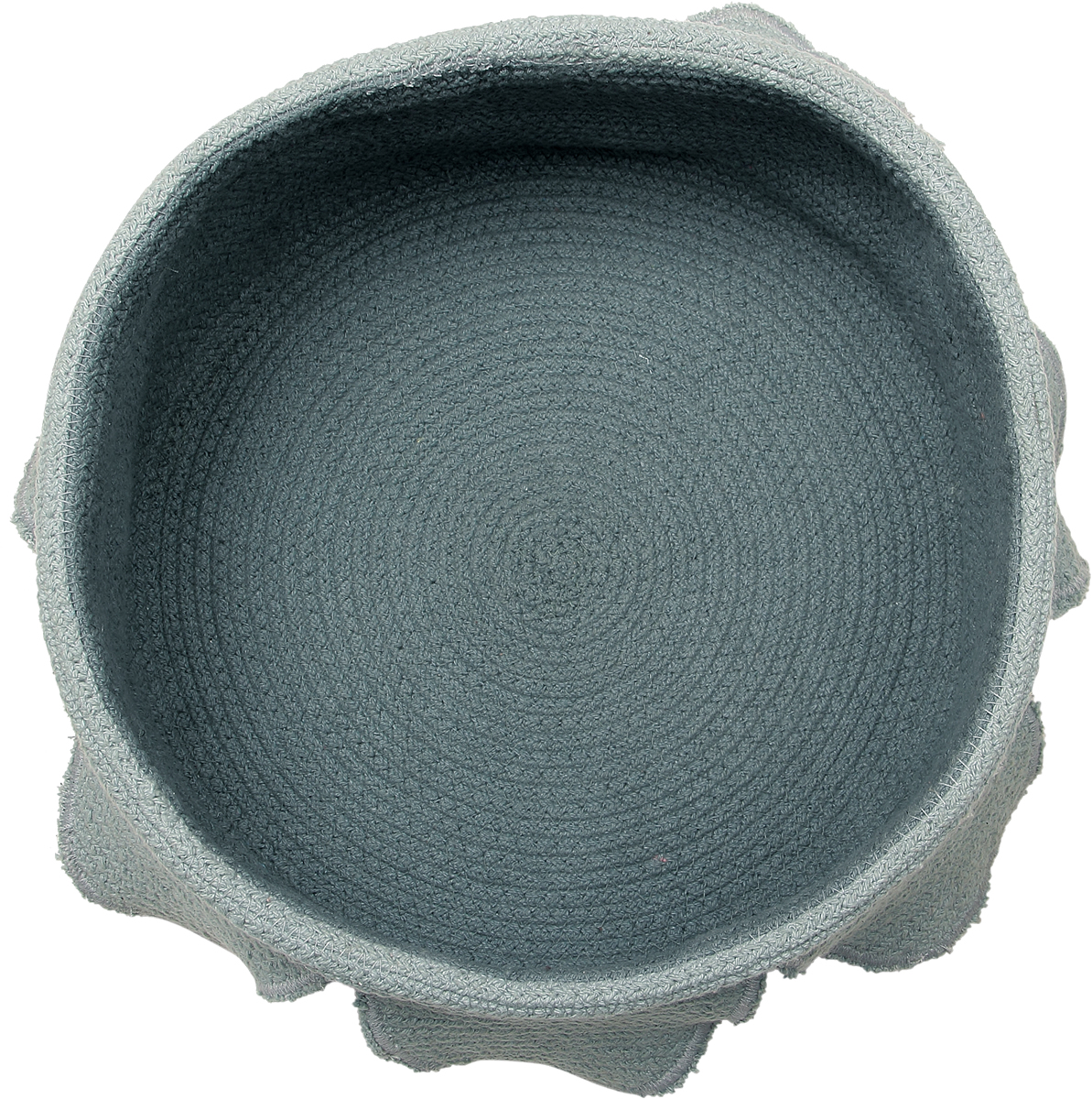 This cotton basket with irregular petals around it is inspired in the classics English Gardens. Every petal has been carefully perfected with scissors, so every handmade basket result as a unique piece. We find in this floral basket the perfect deco home accessory to store any type of object or as a regular plant pot. Handmade: carefully and individually handmade by our artisans.; Eco-friendly: 100% natural cotton and non-toxic dyes.; Easy to match: you can match it with with our rugs, cushions or blankets.; Machine-washable: easy to wash, it can be washed at home in a conventional washing machine.; Composition 100% Natural Cotton.; Quality It is a handmade product, taking care of every detail.; Every basket is unique and different.; There may be minor variations in color and shape.; This product meets all the quality and safety standards for children.; The product has the ISO 9001, ISO 14001 and ISO 18001 certificates.; Environmentally responsible: non toxic or polluting dyes have been used.; Extensive quality controls to check for needles and other metals have been applied.; Made in India.;.