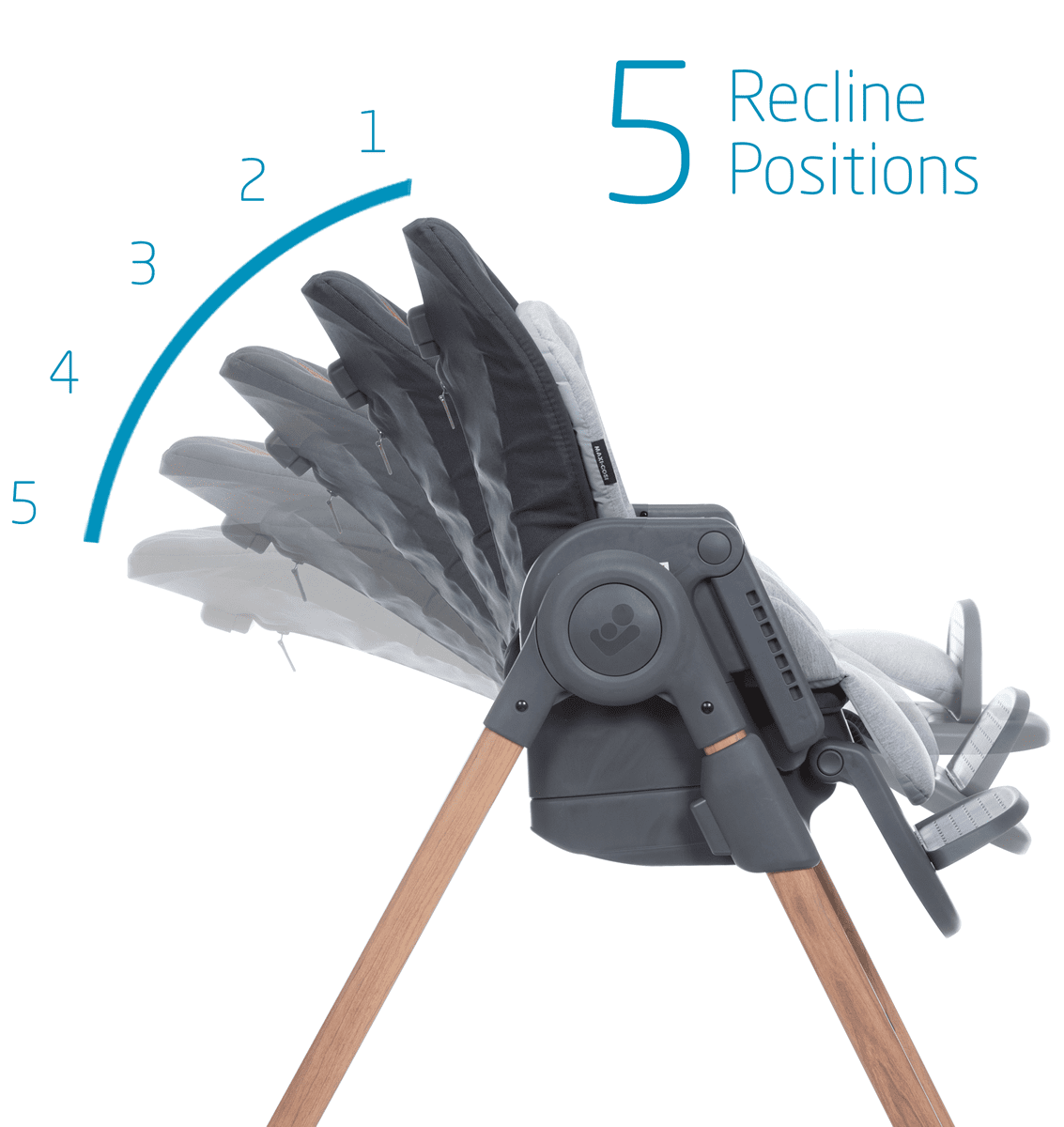 The Minla is full of possibilities. With its five recline positions, four tray positions and eight heights, you can use it as a relaxed infant seat thanks to the cozy inlay, as a high chair, as a cool booster seat with tray... The possibilities to have your child right there with you at the table are endless. A customized fit as your child grows? You got it with the 6-in-1 Minla high chair. While we cannot we cannot guarantee less of a mess from the birthday cake or vegetable puree, we can guarantee less trouble in cleaning it all up! The high quality materials and zip-off seat pad are easy to wipe down or throw in the laundry. The Minla is almost too good-looking to stow away - but sometimes you just need the space. When finished with your meal or planning a party, you can easily store away the Minla thanks to its compact folding ability. But the Minla is so stylish, you may just want to leave it out as a conversation starter! The Maxi-Cosi Minla. The high chair that changes as much as they do. Weight Class: From birth to 50 lbs.