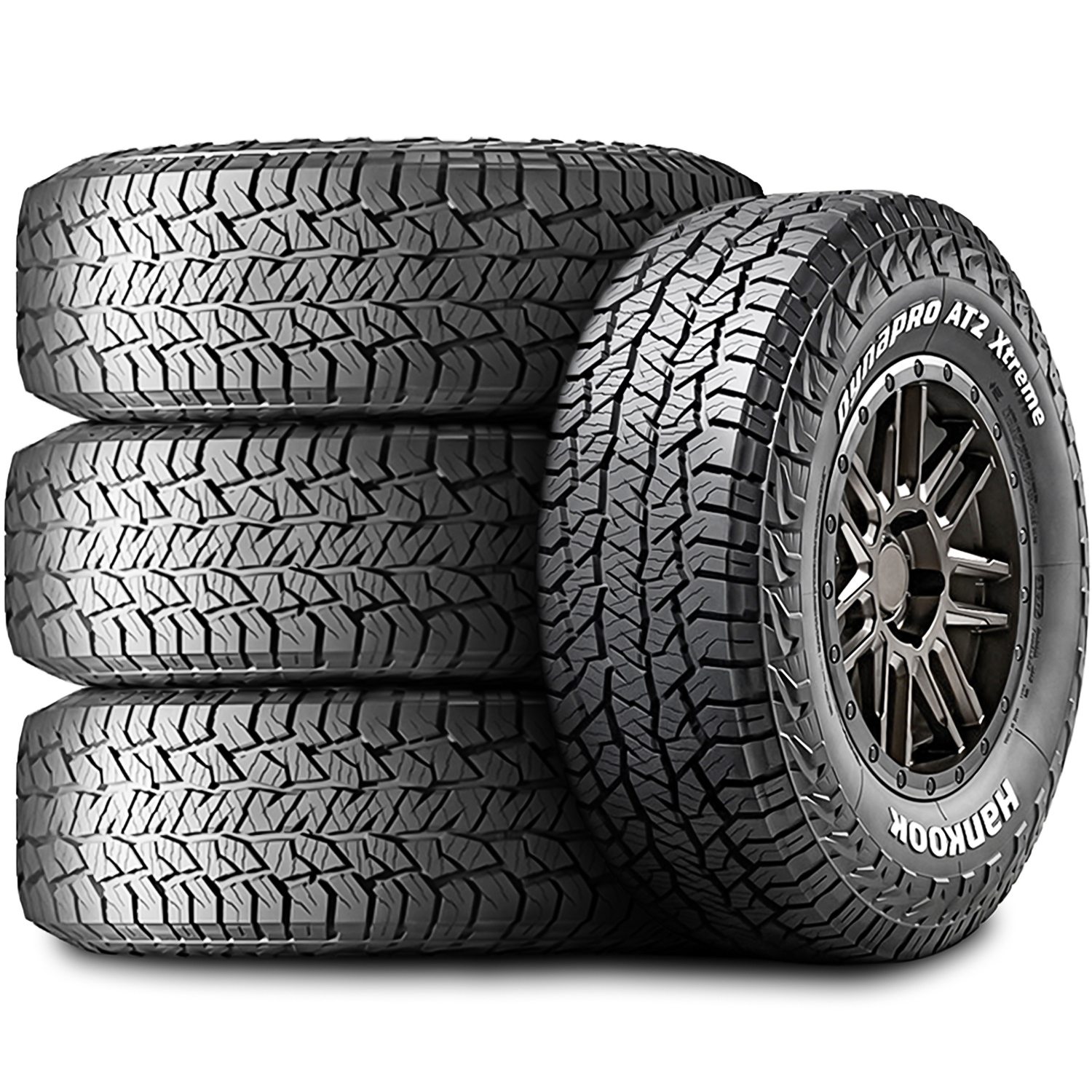 Hankook Dynapro AT2 Xtreme. FEATURES AND BENEFITS: Extreme terrain traction; All season traction; Longer lasting tread life; Enhanced controllability; High driving comfort levels; . OVERVIEW: The Hankook Dynapro AT2 Xtreme is an extreme terrain, all season tire manufactured for SUVs and light trucks. Hankook offers a 60,000 mile treadwear warranty with light truck sizes and a 70,000 mile warranty with SUV sizes of this model.The tire guarantees exceptional versatile terrain traction, while also offering a secure on-road drive. This is achieved with the aggressive pattern's multi-directional grooves and sipes which firmly grip the driving surface. As a result, the tire manages to firmly grip the road surface with extra biting edges. These tread elements also optimize the soft, loose, and uneven terrain grip. The cross-combined scoops on the shoulders provide additional traction through deep mud as well. The staggered block placement maintains a clean footprint, by eliminating mud and snow.The details of the footprint and the durable all season compound ensure the tire's year-round traction. They work together in order to provide exceptional dry, wet, and winter performance. The firm surface grip and excellent compound durability guarantee the tire's secure traction even in severe winter conditions. This got the tire certified with the three mountain-peak and snowflake symbol for its winter weather, ice, and snow durability.The self-cleaning nature of the tread also avoids stone retention. It ejects rocks stuck in the grooves before they can drill into the tread and damage the casing. The special high-depth sidewall blocks also protect the tire from external damage. Cuts and punctures are resisted, preventing them from shortening the tire's service life. Additionally, the durable compound and the special Max Mileage technologies work to optimize the treadwear rate. They resist premature and irregular wear, further lengthening their tread life.Better handling is guaranteed with the stabilized footprint. Stronger stability allows the tire to closely follow the driving surface, even during the tire's versatile terrain application. In this manner, it significantly enhances steering responsiveness and driving stability. Stronger controllability and maneuvering ensure consistent control over the vehicle.The Hankook Dynapro AT2 Xtreme offers a comfortable on-road drive. The tread design's ideal grooves design and tie-bar pattern help to decrease the road noise levels. The grooves create sound barriers which prevent sound wave formations while the tires are in motion. Better tread stability avoids tread flexing, which helps to minimize the tread pattern noise generated. As sound waves cannot reach the vehicle's cabin, the tire guarantees a quiet driving experience.Extreme Terrain tire types are not designed for regular highway driving. They are primarily designed for off-road applications. Manufacturers recommend changing tires every 10 years. As long as tires are properly stored before they are sold, the year of their manufacture will not shorten their service life.