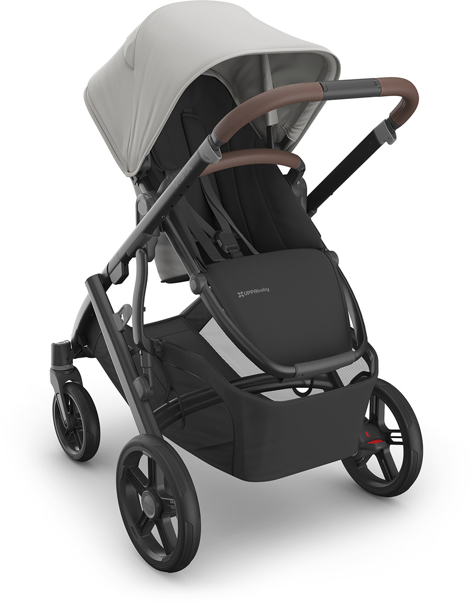 One for all. Our Vista stroller is intuitively designed to "grow" with your family! It starts as a single stroller but can easily transform to accommodate up to three children with added accessories and adapters - becoming the ultimate in portability and convenience! Features All-Weather Comfort Seat with Seasonal Seat Liner for cooler days or converts to mesh for warmer days; Enhanced FlexRide Strolling Suspension delivers a smooth ride whether strolling with 1, 2, or 3; Quick-to-secure harness system with magnetic buckle and easy-to-adjust, no-rethread harness; Parent-facing and forward-facing full size, toddler seat grows with child up to 50 lbs; Effortlessly folds in one simple step & stands when folded for compact storage; Extendable, water-repellent UPF 50+ canopy and easy-to-peek window for added air flow; Extra-large, easy-access basket with 30 lb. weight limit to easily store all your essentials while strolling; Premium fabrics and full-grain REACH certified leather details; Never flat tires for durability and smooth strolling through various terrain; Reflective trims on wheels and basket to enhance visibility while strolling; Ability to transport up to three children with RumbleSeat and PiggyBack accessories; One-handed multi-position recline for those "resting strolls"; Extendable water-repellant canopy with UPF 50+ protection, zip-out fabric, and mesh panels with covering for added protection for any weather; One-hand, adjustable handlebar to better accommodate different heights; Front wheel locks with visual indicators for parent's piece of mind; Adjustable footrest positions feet and legs comfortably as they grow; GREENGUARD Gold certified to support healthier air quality & low chemical emissions; Specifications Toddler Seat: 3 months to 50 lb; suitable from birth with Infant SnugSeat or Bassinet accessory (sold separately); Weight Frame & Seat: 27 lbs; Frame: 20 lbs; Seat: 7 lbs; Bassinet: 8.8 lbs; ; Unfolded: 36″ L x 25.7″ W x 39.5″ H; Folded with seat attached: 17.3″ L x 25.7″ W x 33.3″ H; Folded without seat attached: 13″ L x 25.7″ W x 32″ H; What's Included Frame; Toddler Seat; Seasonal Seat Liner; Bumper Bar; Toddler Seat Bug Shield; Toddler Seat Rain Shield; Toddler Seat Storage Bag; 3-Year Warranty;.