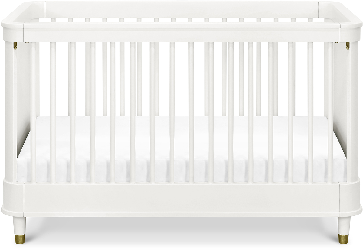 Ease into contemporary style with the Tanner 3-in-1 Crib. Featuring a gently curved silhouette with solid rounded side panels and elegant bronze metal feet accents, the Tanner is an effortlessly transitional piece for the home. Crib converts to a toddler bed and daybed, and fits any standard full-size crib mattress. Features GREENGUARD GOLD CERTIFIED: This product has been tested for over 10,000 chemical emissions and VOCs, undergoing rigorous scientific testing to meet some of the world's most stringent chemical emissions requirements. It contributes to cleaner indoor air to ensure the health and safety of your family and home.; 3-in-1 CONVERTIBILITY: Our cribs adapt as your baby takes their first steps into toddlerhood. Designed to easily convert to a toddler bed and daybed. (Toddler bed conversion kit #M14399 sold separately.); THOUGHTFUL DETAILS: Flush solid end panels, hidden hardware construction and bronze metal feet give the Tanner Crib a premium, contemporary-inspired design.; QUALITY MATERIALS: We source materials with your family in mind. This crib is made of solid, sustainable American Poplar hardwood and TSCA compliant engineered wood.; GROWS WITH BABY: Our cribs have 4 adjustable mattress positions to help transition as your baby grows and develops from newborn to toddler. Easily lower the mattress position as your baby begins to sit, pull up, and stand.; BREATHE EASY: We know chemicals have no place in your nursery so we use a non-toxic multi-step painting process that is lead and phthalate safe. This product meets or exceeds ASTM International and U.S. CPSC safety standards.; Specifications Made in VietnamDIMENSIONSAssembled Dimensions: 55.25"L x 31"W x 35"HAssembled Weight: 99lbsSlat Strength: 135 lbsFront Rail to Floor Height: 35"Interior Crib Measurements: 52"L x 28"WMAXIMUM WEIGHT50 lbs.