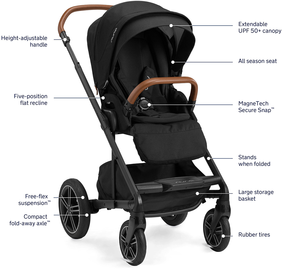 The next generation of Nuna's most popular stroller features a smaller fold, a smoother ride and a new name: the Nuna MIXX Next. The MIXX Next builds on the MIXX by folding 6.5 inches smaller than its predecessor and standing on its own when folded. It also offers better maneuverability, thanks to improved suspension and redesigned rubber wheels. The MIXX Next comes with Nuna's unique ring-shaped car seat adapter and is compatible with all Nuna infant car seats. The ring adapter allows parents to attach and detach the car seat with one hand, making it a snap to move baby from car to stroller. The stroller also pairs with the MIXX Series Bassinet, which is approved safe for overnight sleeping. Rugged rubber tires with enhanced all-wheel suspension make for smooth strolling over any type of terrain, while premium fabrics with leatherette details create a stroller that's as stylish as it is practical. The MIXX Next features an all-season seat that helps keep your child cool in warm weather. The reversible, two-piece bamboo seat insert helps wick moisture and can be removed to reveal an all-mesh seat back. A no-rethread harness makes for easy adjustments as your child grows. The Nuna MIXX Next stands when folded, locks automatically and can be trolleyed for easy transport. The stroller features five comfortable positions: Reverse the seat to face you or face forward, or recline the seat completely so baby can nap in comfort. Features: Folds to a length that's 6.5"" shorter than the original MIXX and stands when folded; Rubber wheels offer enhanced all-wheel suspension for superior maneuverability on rough terrain; Can be used as a travel system with Nuna infant car seats (with included ring adapter); Pairs with Nuna MIXX Series Bassinet, which is safe for overnight sleeping; Front wheels swivel for maneuverability or lock for stability; Compact fold, no matter what position the seat is facing; Front and rear-wheel progressive suspension absorbs shock for a smooth ride; One-hand, five-position recline, including to true flat sleeping position; Hand-sewn, leather-look handlebar and belly bar; Stylish accents, including a dark matte frame and chrome-accented wheels; Premium cotton fabric; Adjustable handlebar and leg support; Oversized, UPF 50+ canopy with extendable eyeshade, mesh ventilation panels and underside double-quilted stitch work; Removable, rotating arm bar fits kids of various sizes; Large storage basket includes compartment divider; Trolley function makes stroller easy to carry when not in use; Specifications: Dimensions: 32.7""L x 23.6""W x 45.3""H; Folded dimensions: 27.5""L x 23.6""W x 19""H; Stroller weight: 28.3 pounds; Weight limit: 50 pounds; Warranty: 2 years; PIPA Aire RX Infant Car Seat Who says security can't be super stylish? Lighten your load and up your style game. That's the PIPA aire rx motto. Whether it's the sleek design elements or the smart security features that catch your eye, the PIPA aire rx car seat is all about hassle-free adventures with all the perks. Light on weight, heavy on style, it's your go-anywhere, do-anything partner that's in it for the long haul. In the world of PIPA aire rx, casual meets cool, and carrying less is the ultimate flex. Now, you can carry less, do more, and look good doing it. Your refined taste for baby adventures deserves an equal match. Features PIPA aire rx The PIPA aire rx is lightweight with zero compromises; A lightweight full-featured infant car seat; Ideal for city living and taxis as it can be installed with a vehicle seat belt and no base; Integrated magnetic buckle holders keep straps out of the way when buckling baby in; Fabrics and inserts are conveniently machine washable; FAA certified for aircraft use with or without a base; Connects with all Nuna strollers to create a stylish travel system*; 5-second steel-reinforced True lock installation makes set up swift, simple, and safe**; Side Impact Protection (SIP) for ultimate baby safekeeping; Open belt path with lock off secures lap and shoulder belt; Features Aeroflex foam that is cleverly lightweight, resilient, and minimizes force transferred to baby; 3-position height-adjustable headrest and 5-point harness keeps little ones in place; Removable infant head and body inserts nestle baby in comfort and security; Tailor tech memory foam seat panel and headrest provides a comfortable custom fit; UPF 50+ canopy with 2 positions and a flip-out eyeshade protects from sun exposure; The iconic Sky drape provides baby with ultimate privacy for quiet moments; Soft yet durable micro-knit fabric for refined style and casual warmth; Super-resilient top-of-the-line plastics for a heavy-duty secure shell; Exposed aerospace aluminum handle adds a contemporary aesthetic and enhances the seat's intuitive functionality; Luxe leatherette carry handle for more secure gripping; From fabric to foam and beyond each eleme.