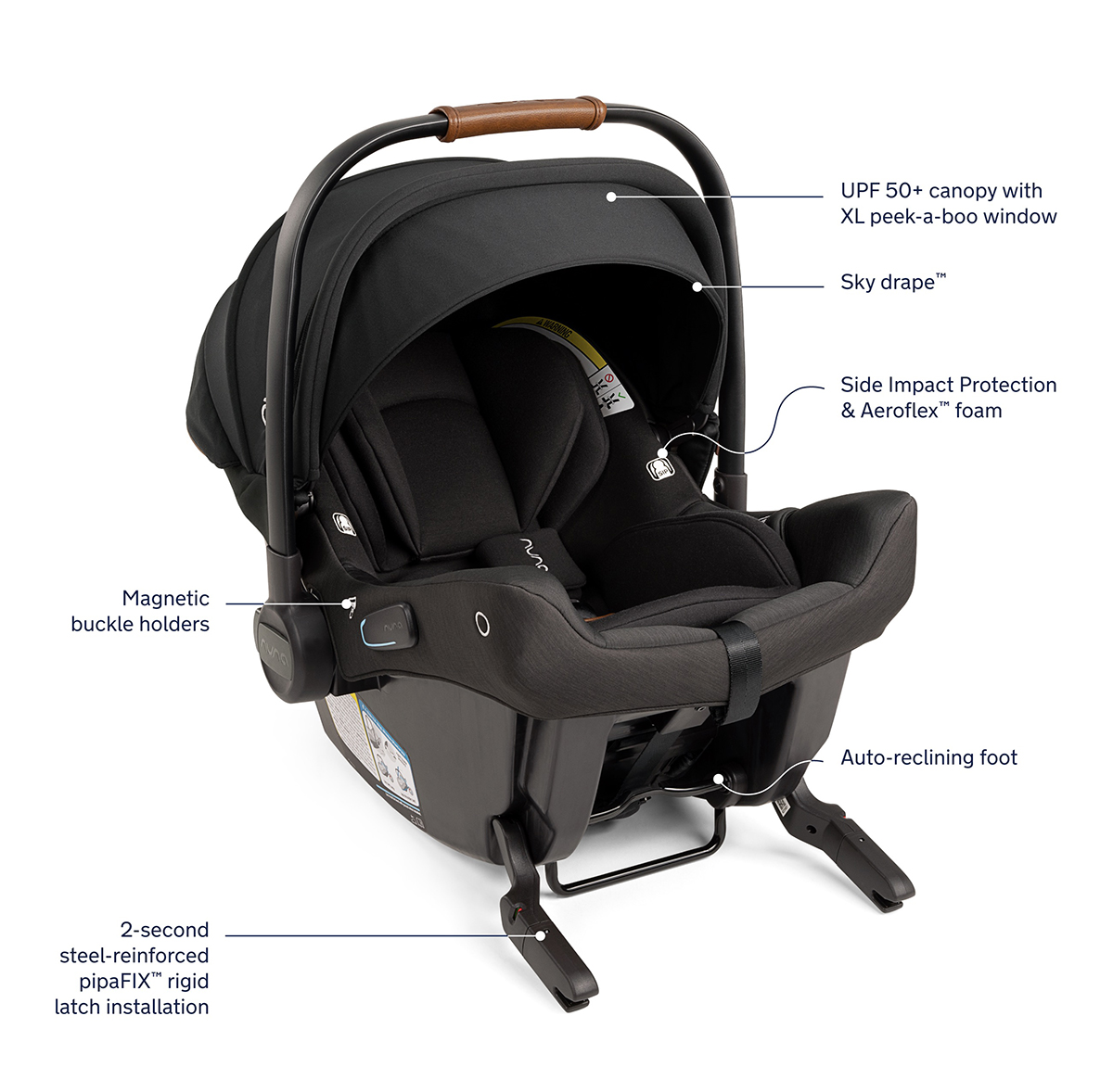 Together, the PIPA urbn infant car seat & MIXX next stroller create a next-level travel system where advanced safety and full-featured luxury features come together in a lightweight package that moves you and baby seamlessly through the suburbs and to the city. Your everyday travel companion meets modern rides, reimagined. The Nuna PIPA urbn reimagines the future of travel with baby. This one-of-a-kind, ultra-lightweight infant car seat weighs only 7 pounds (without canopy & insert) and installs using the advanced pipaFIX rigid latch. This groundbreaking baseless installation feature is integrated into the car seat, allowing for super secure installs in seconds when moving from car to taxi, to rideshare and offering a new generation of journeys. It also features a one-handed, quick release from stroller and vehicle and Nuna's iconic Sky drape for ultimate privacy - so you and baby can navigate life with modern-day ease. Feel free to pack up and go anywhere with the Nuna MIXX next stroller. It delivers a smooth ride you can maneuver with one hand and a convenient variety of riding modes for different ages and stages. The five position recline feature can be adjusted with one hand and offers baby the ultimate in customized comfort options. When done strolling, it packs away with a compact fold no matter which way the seat is facing. It is designed to effortlessly connect with the PIPA urbn to make baby life on the go so much easier. PIPA Urbn Features: 2-second* steel-reinforced pipaFIX rigid latch installation makes set up swift, simple and above all-safe; Ultralight for on-the-go at just 7 lbs**; Travel with ease with pipaFIX or vehicle seat belt-no base needed; One-handed vehicle and stroller release for quick and easy in-and-outs; Auto-reclining foot that aids in proper installations in vehicles; European belt path for vehicle belt installations; Aeroflex foam that is cleverly lightweight, resilient, and minimizes force transferred to baby by absorbing and diffusing energy; Side Impact Protection for ultimate baby safe keeping; Five-point harness keeps travels secure; Sky drape pulls down smoothly and attaches quietly with magnets; Full-coverage UPF 50+ canopy is extendable and features a flip-out eyeshade and XL peek-a-boo window; From fabric to foam and beyond, each element is smartly sourced to be both flame resistant and contain no added fire-retardant chemicals; Integrated magnetic buckle holders help keep straps out of the way when buckling baby in; Head support includes a 2-layer soft surround to accommodate smaller babies; Infant head support and body inserts feature environmentally friendly Merino wool and TENCEL *** branded lyocell fiber blend that is soft, naturally controls moisture, and is environmentally friendly; Machine washable seat fabrics and inserts; Luxe leatherette carry handle for stylish journeys; GREENGUARD Gold certified - products that have achieved GREENGUARD certification are scientifically proven to meet some of the world's most rigorous third-party chemical emissions standards, and certified to not contribute to indoor air pollution or chemical exposure; FAA certified for aircraft use; Not compatible with PIPA series base or RELX base; Set of included anchor guides make it easy to locate and install on the lower anchor bars in vehicle; MIXX Next Features: MagneTech secure snap is a self-guiding magnetic buckle that automatically locks into place; Four modes: PIPA series infant car seat, bassinet, seat parent facing or world facing; Ring adapter is included for an easy on/off one-click travel system; Rear-wheel Free flex suspension and front-wheel progressive suspension technology; Compact fold-away axle for a more compact fold; Stands when folded; A one-piece fuss-free, compact fold no matter which way the seat is facing; All-season seat keeps baby comfy in winter and unsnaps to mesh in summer; Removable two-piece bamboo blend fabric seat insert grows with baby; No-rethread harness for easy adjustments; Tough, rubber foam-filled tires are ready for any terrain; One-touch, rear-wheel braking system is strong and responsive; Easy to flip the seat and switch to bassinet or travel system modes; Quick release five-point harness for secure strolling; True-flat recline for newborn comfort; Five position recline easily adjusts with one hand; Adjustable calf support with integrated footrest promises a comfortable ride; Super convenient, automatic quick-click fold lock and trolley function when folded; Height-adjustable pushbar; Smart and stately dark matte frame with chrome black wheels; Luxe leatherette accented pushbar and armbar; UPF 50+ canopy is water repellent and extendable and features a flip out eyeshade, ventilation panel and window; Two compartment basket including secret zipper pocket and cell phone pocket on seat back; Removable armbar fits kids of all sizes; Pairs perfectly wi.