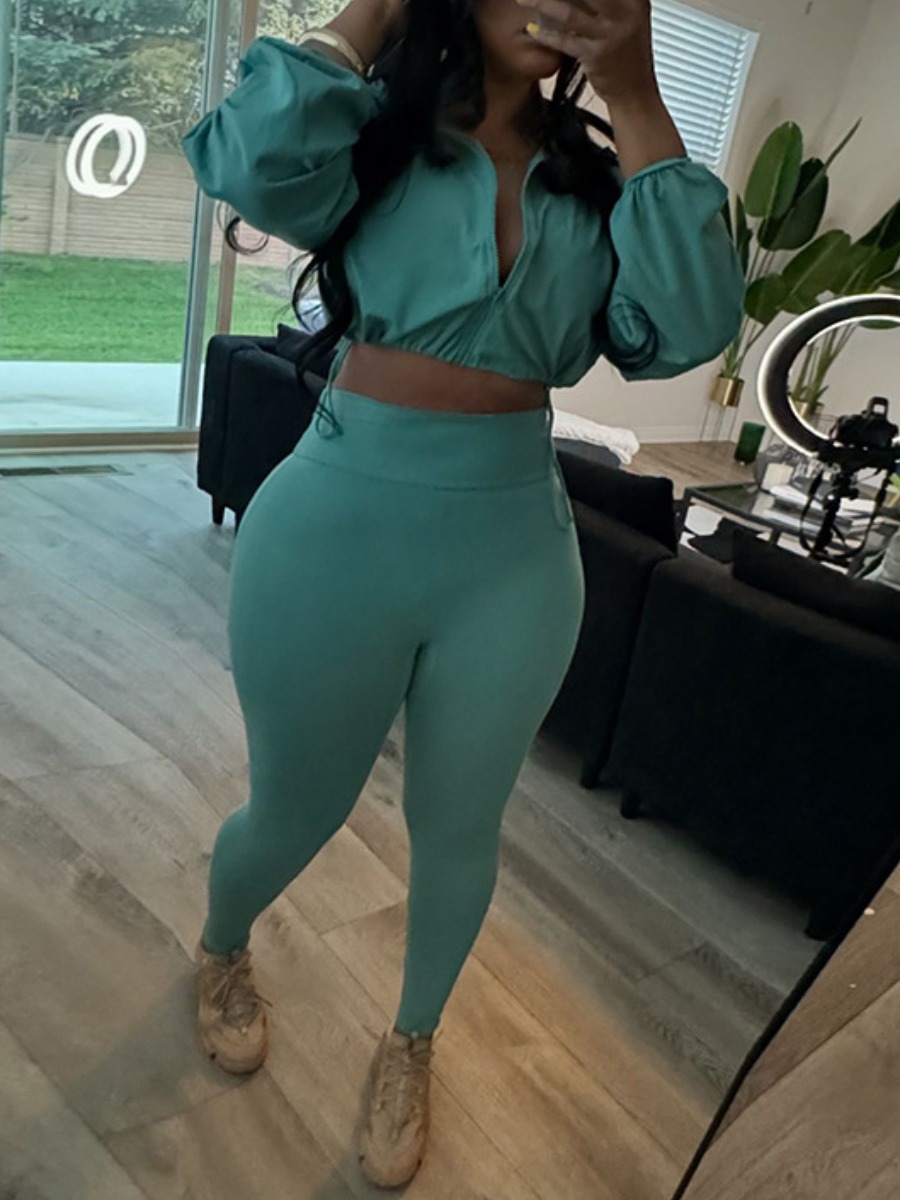 LW BASICS Drawstring Solid Color Two-piece Pants Set.