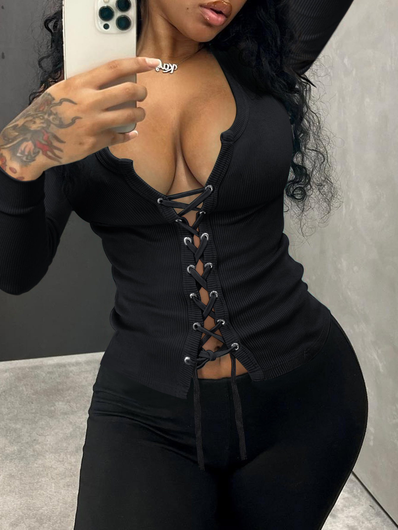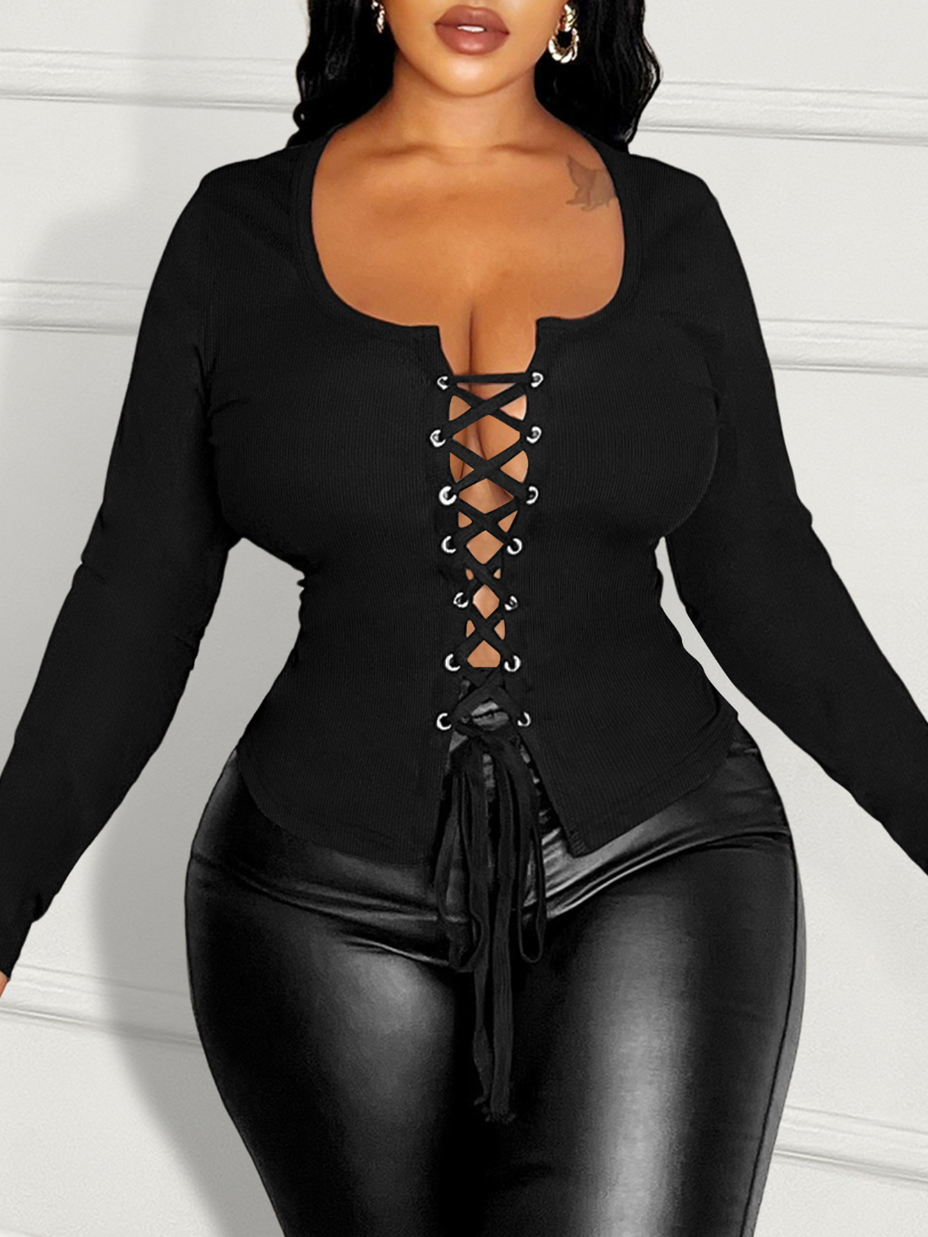 Buy LW Plus Size Bandage Design Solid Color T-shirt for $11.09 at @ Lovelywholesale.com