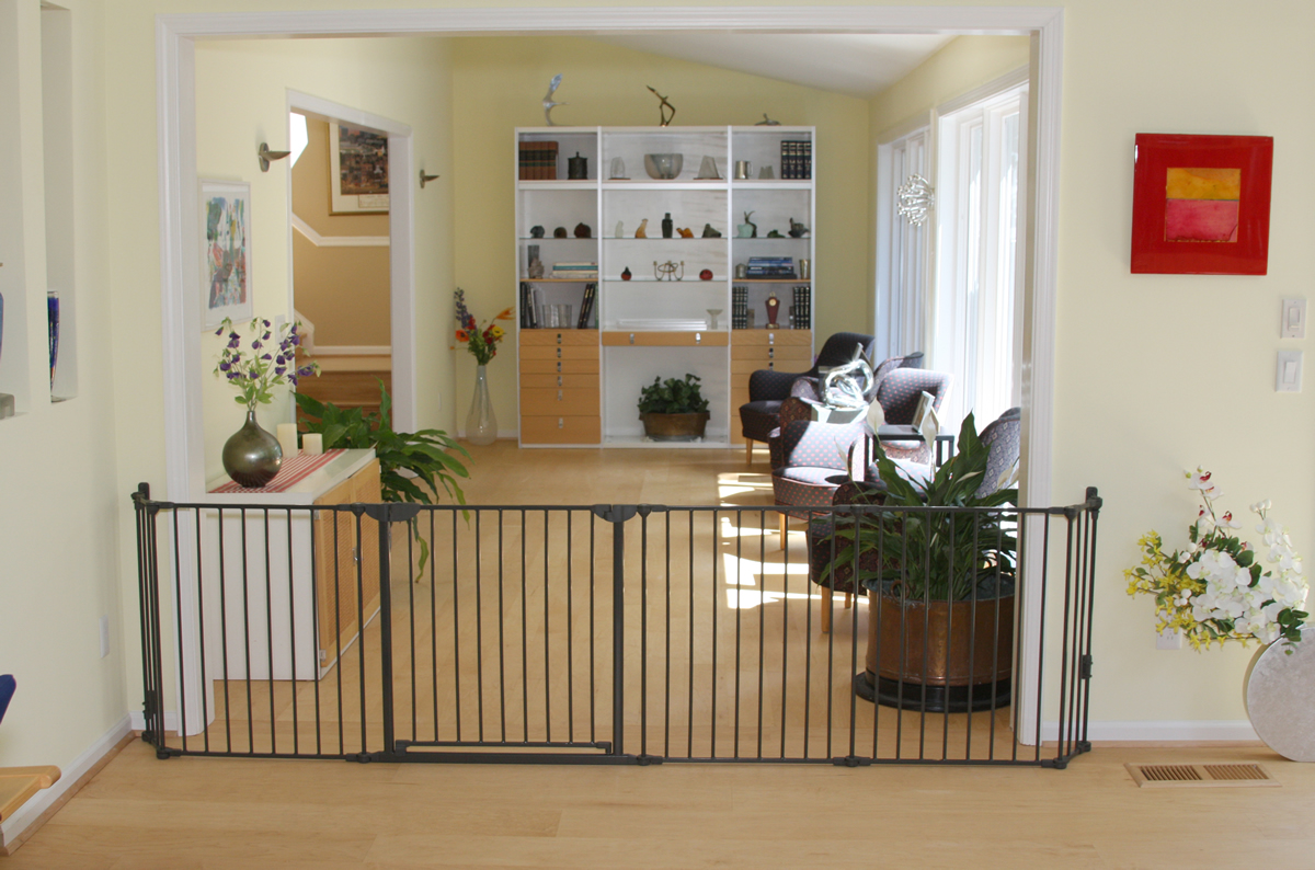 Not all childproofing needs come in standard sizes but you still deserve Qdos safety. The Construct-A-SafeGate will create a safe space in almost any situation ? around fireplaces, stairwells, large doorways ? you are only limited by your imagination. Two wide sections and a door are included and will fit openings up to 82.5?. Additional sections and doors are available so you can build what your home needs, even create a freestanding enclosure. Knowing the entire system meets the toughest European Safety Standards as well as the US and Canadian Standards will give you peace of mind. The included baseboard adapters allow you to install the gate perfectly over baseboards up to 0.75? (19 mm) thick and 4.25? (11 cm) tall. The top adapter also comes with spacers to allow you to mount the FastMount rail perfectly vertical even if the wall isn?t perfect, without the need for any additional accessories. Meets tough European Safety Standards, as well as U.S. and Canadian Standards; Sturdy, strong construction and hardware mount insures piece of mind; Additional sections and doors allow for customization to block off large and unusual openings; Secure, anti-skid Floorsafe silicone pads to prevent movement and scratching of floors; Allows you to create a freestanding enclosure with additional sections; Qdos NiteSafe Glow Strip warns against potential trip hazard at night; Can be detached from the wall mounts without tools for temporary removal; Baseboard friendly wall mounts means no damage to baseboards; Fits openings up to 82.6? (210 cm) with included sections. Three styles/sizes of extra sections available: 8? (20 cm), 24? (60 cm), and 31.5? (80 cm) door section;.