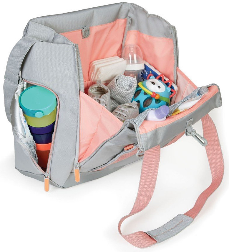 Perfect for the active parent, our ready-for-anything tote is a diaper bag and food storage tote in one. The zippered front panel opens wide so you can easily access everything inside, while the translucent front pocket lets you view your phone to see calls and texts as they come in. The bag comes complete with our 8-piece Grab & Go Formula-to-Food Container Set with Perfect-Fit Freezer Pack. 14 pockets for total organization; Open-wide front zip panel for easy access; Included 8-piece Formula-to-Food Container Set with reusable gel freezer pack; Insulated pocket perfectly fits the container set; Translucent phone pocket to easily check incoming calls and texts; Wear it messenger-style or use the tote straps; Hangs neatly on a stroller with the included stroller straps; Includes cushioned changing pad; Phthalate-free; Size (inches): 18.5l x 6w x 15h; (cm): 47l x 15w x 38h;.