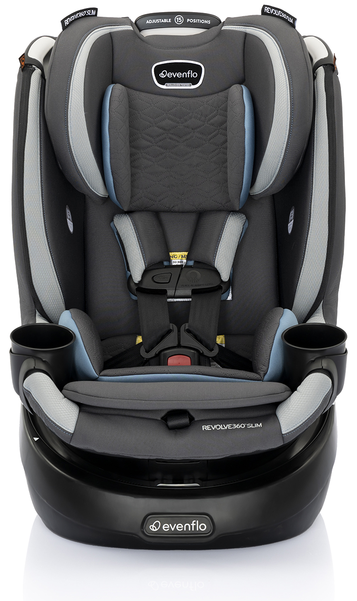 Got a compact vehicle and a little one on the way? Check out the Evenflo Revolve360 Slim 2-in-1 Rotational Car Seat! We slimmed the exterior of our revolutionary car seat to create a 16.7" footprint without sacrificing your child's seating space or safety. You can fit more of what you love into your backseat with more room for passengers and your growing family! A spin-off of the Revolve360, America's bestselling rotational car seat, the Revolve360 Slim offers one-hand, 360 rotation in all modes, making it easier to get your child in and out of the car. But a 360 rotating car seat is just the beginning. The Revolve360 Slim offers two modes: rear-facing (4 lb to 50 lb, for a child measuring from 17 in. to 48 in) and forward-facing (22 lb to 65 lb, for a child measuring 28 in. to 49 in.). For peace of mind all the way around, this slim fit car seat offers the extended security of rear-facing all the way up to 50 lb. Child safety experts say the longer your child remains rear-facing, the better. Convenience comes full circle with a rotating car seat you can install just once for rear-facing and forward-facing - no need to remove in order to make the switch. Sure360 Safety Installation System with LockStrong and Tether360, plus a handy bead-level indicator for leveling in seconds, make one-time installation safe, secure and simple. The best swivel car seat is one that's also comfortable. On-the-go recline means you can adjust the car seat to the perfect angle without having to reinstall the car seat or bother your child. Offering style and ease at every turn, the Revolve360 Slim features head-turning good looks to complement your bold moves. Discover the new spin on Slim! At Evenflo, we go above and beyond government standards to create car seats that are safe. The Evenflo Revolve360 Slim meets or exceeds all applicable federal safety standards. It is structural integrity tested at energy levels approximately 2x the federal crash test standard, and it is side-impact tested, rollover tested and temperature tested. Features: MAXIMIZE SPACE IN YOUR BACKSEAT: Features a streamlined 16.7" footprint to save space for passengers without sacrificing safety, comfort or style; GET IN AND OUT EFFORTLESSLY: One-hand, 360 rotation makes it a breeze to get your child in and out of the car - an award-winning innovation that keeps on giving!; GROW WITH IT: Offers rear-facing mode for children weighing from 4 lb to 50 lb (17 in. to 48 in.) and forward-facing mode for children weighing from 22 lb to 65 lb (28 in. to 49 in.); EXTEND REAR-FACING USE: Allows you to keep your child rear-facing longer as recommended by child safety experts - all the way up to 50 lb.; SECURELY INSTALL WITH EASE: Install the Revolve360 once for rear-facing and forward-facing - Sure360 Safety Installation System with LockStrong and Tether360 make installation safe, secure and simple; RECLINE ON THE GO: Easily adjusts without having to reinstall the seat or bother your child; Specifications: DIMENSIONS:16.75" W x 24.3" D x 21" H; WEIGHT: 28.2 lbs; SUITABILITY: Rear-facing: From birth to 50 lbs; 1748"; Forward-facing: From 22 to 65 lbs; 2849"; ;.