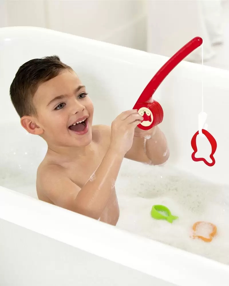 Let's go fishing in the tub! Complete with three different size floating fish and a weighted hook for easier fishing, our cute fox fishing pole for toddlers even makes a "reel" cranking sound for an extra splash of bathtime fun! 2y+; Three different size fish to catch; Fish float in water; Weighted hook allows for easier fishing; Encourages game play and hand-eye coordination; Realistic cranking sound; Signature Skip Hop ZOO animals; Coordinates with Skip Hop ZOO Bath Toys Collection; Size (inches): 5L x 1.75W x 12H; (cm): 12.7L x 4.4W x 30.48H;.
