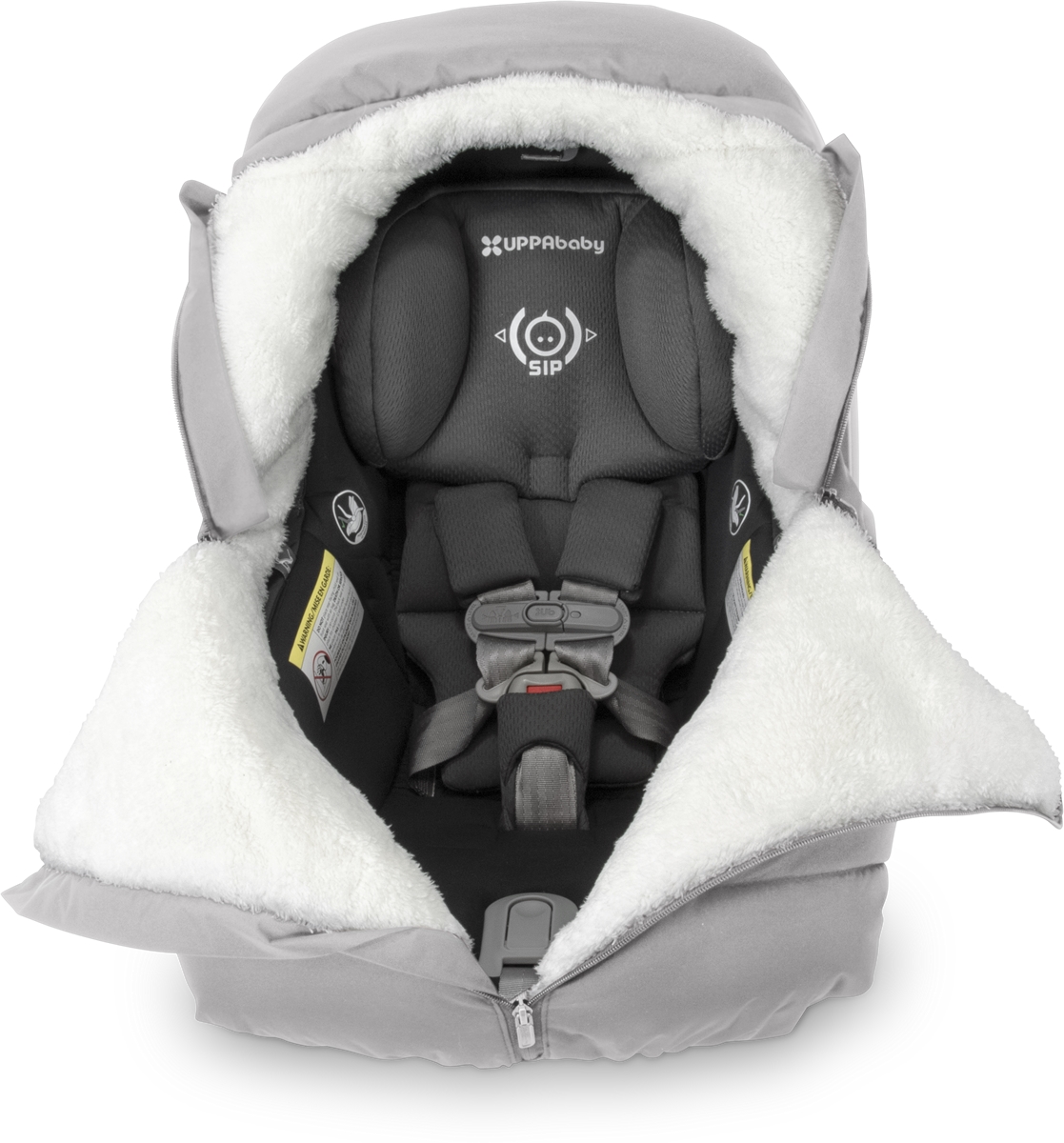 The ultra-plush CozyGanoosh for MESA provides coverage and warmth when strolling or transporting child in inclement weather.. New Sherpa Lining: Soft and cozy lining adds substantial warmth and comfort.; Weather Protection: Outer shell resists water and wind on colder days.; Easy Attachment: Elastic attachment quickly covers the MESA without interfering with harness. No need to take child out of the car seat to attach or remove.; Adjustable: Head opening easily adjusts to child?s face.; Remains attached: Center Zippers and magnetic snaps create openings to cool child down or load in and out.;.