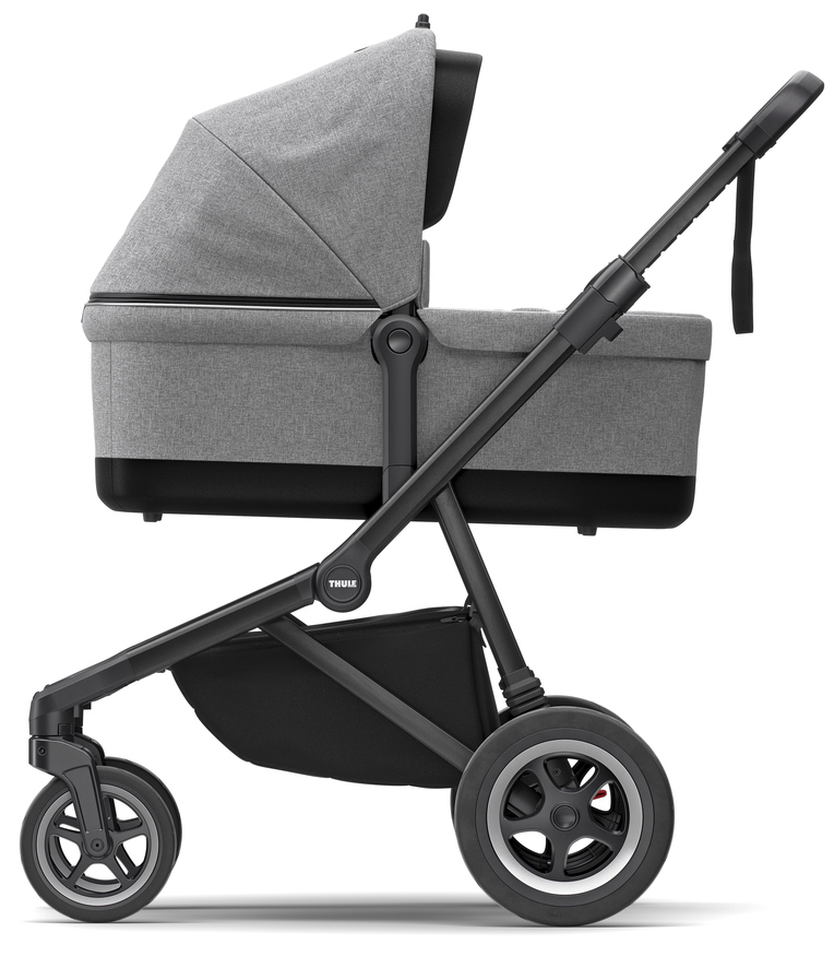 Thule Sleek Single-to-Double Stroller & Bassinet - Black / Grey Melange.