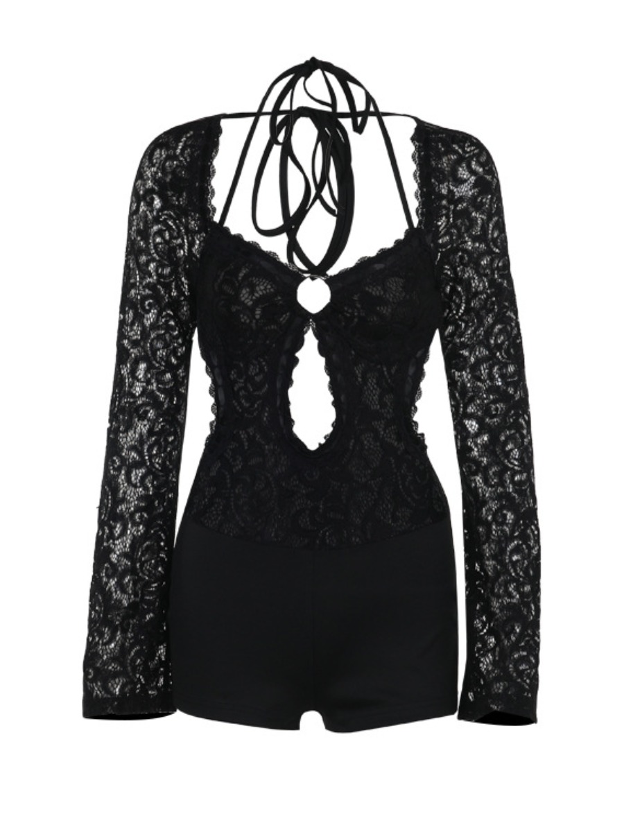 LW SXY Lace Patchwork Solid Color Romper.