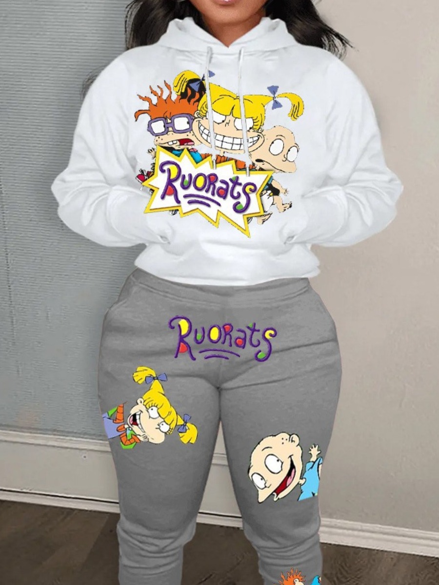 Buy LW Plus Size Cartoon Letter Print Kangaroo Pocket Tracksuit Set for $18.89 at @ Lovelywholesale.com