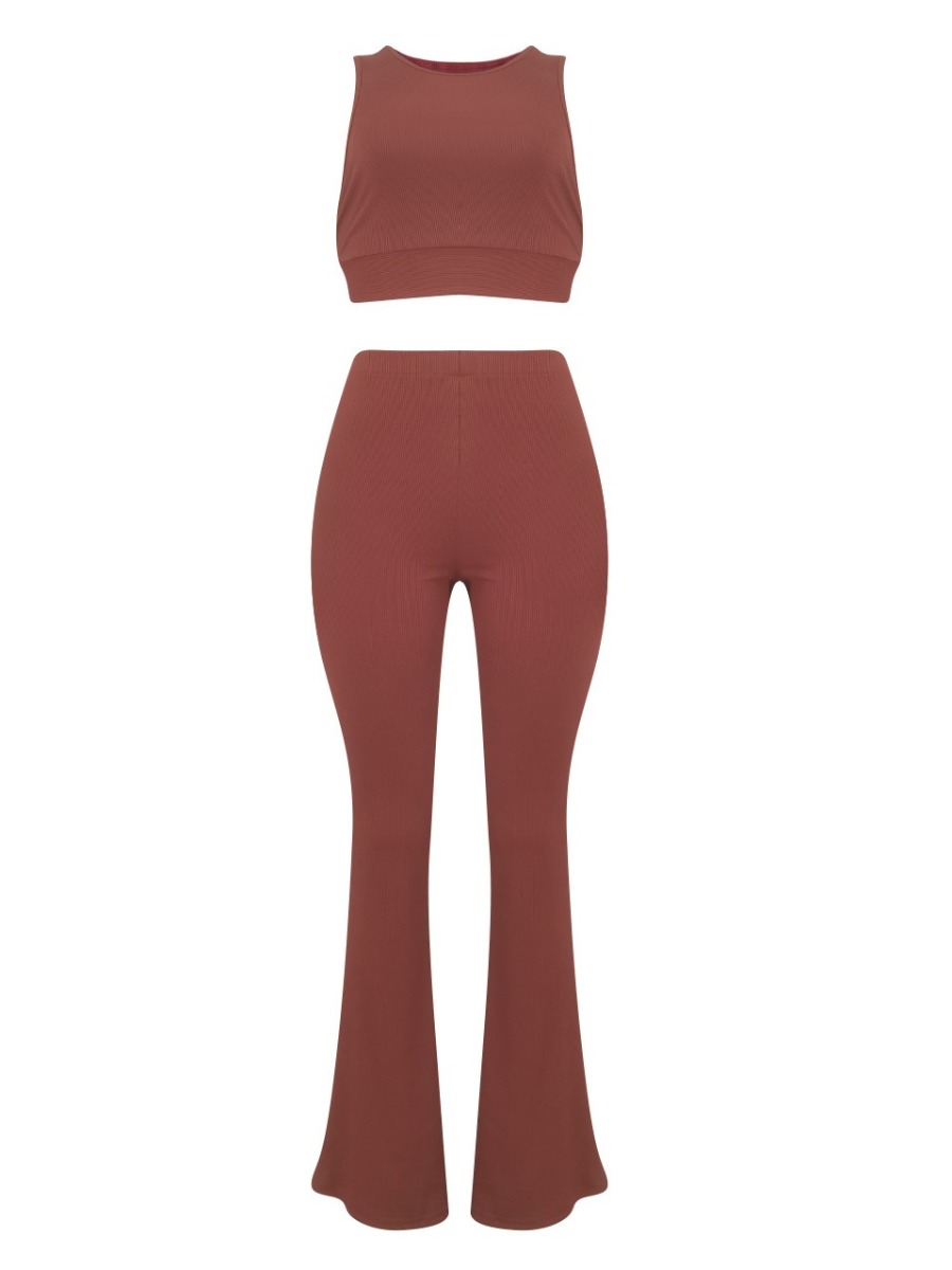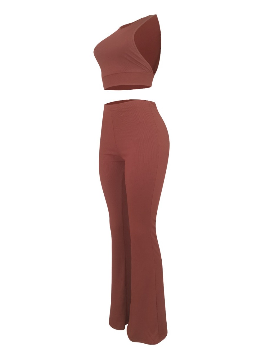 LW BASICS Casual Polyester Round Neck Vests Plain Sleeveless Two-piece Pants Set.