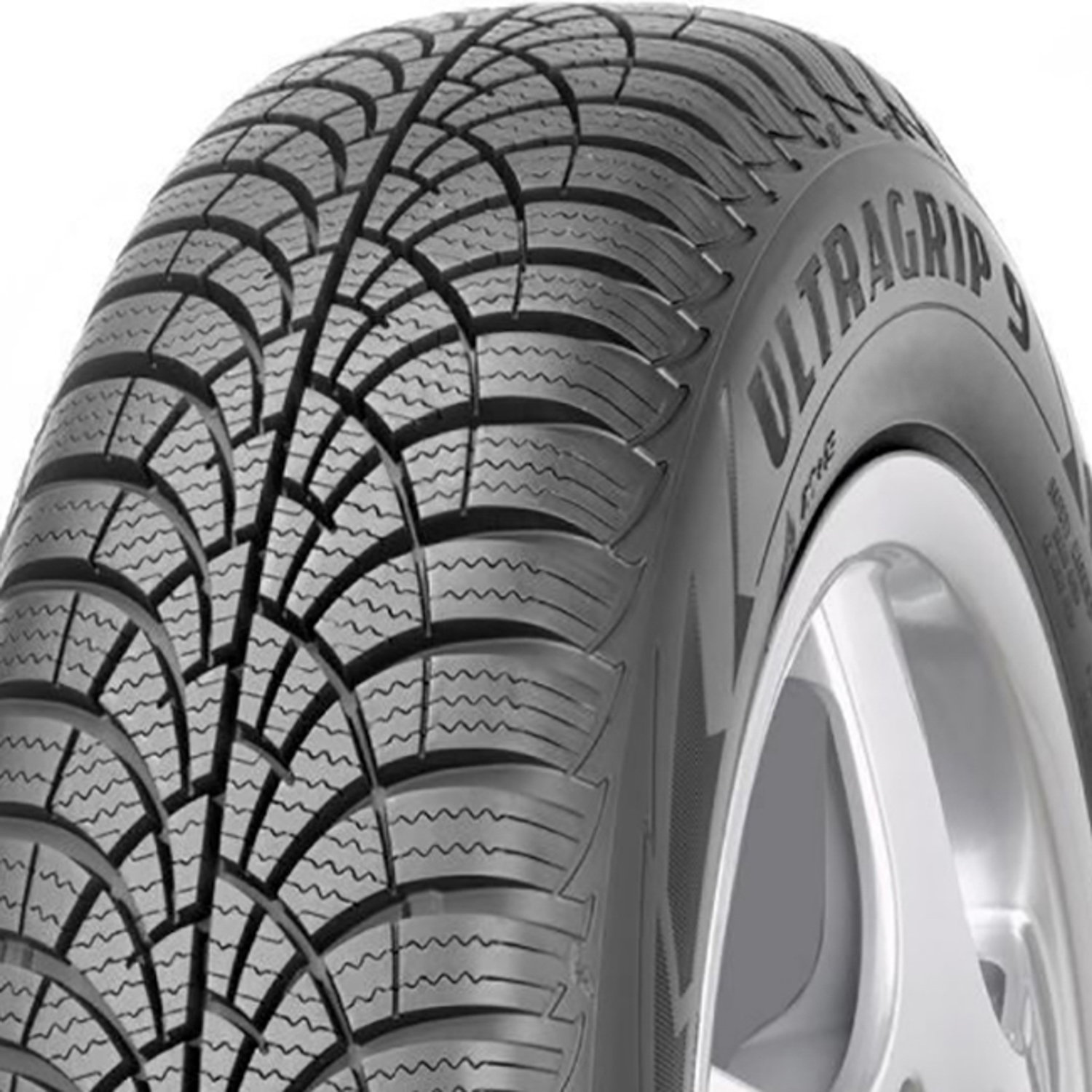 Goodyear Ultra Grip 9+. FEATURES AND BENEFITS: Winter weather traction; Upgraded controllability; Comfortable driving experience; . OVERVIEW: The Goodyear Ultra Grip 9+ is a touring, winter tire made for passenger vehicles and SUVs.The model promotes excellent winter weather traction. The directional tread pattern and the winter compound work together to improve the tires performance on ice- and snow-covered road surfaces. In other words, this tread pattern maintains constant contact with the driving surface even in harsh conditions. At the same time, the special silica compound keeps the rubber pliable in freezing temperatures. The optimal grooves effectively eliminate water and slush from the footprint and resist hydroplaning.The directional tread pattern and the durable rubber compound closely follow the road surface at all times. This significantly increases the tires steering responsiveness and driving stability. The steering response time is faster and more precise to the drivers commands, while the structure is secured against driving pressure. Also, the wide shoulder blocks firmly grip the road surface with extra biting edges and upgraded cornering. On the other hand, the special silica compound shortens the braking distance, by creating friction while stopping. These elements give the driver full control over the vehicle and guarantee a safe driving experience.The Goodyear Ultra Grip 9+ offers a comfortable drive. The directional tread pattern and the special silica compound work together to reduce noise and vibrations during the performance. In other words, this footprint channels airwaves through, preventing them from coming into contact with tread elements and generating noise. Also, the special silica compound absorbs the shock of the ride, which minimizes vibrations felt by the passengers. This combination guarantees the tires quiet and comfortable performance. Manufacturers recommend changing tires every 10 years. As long as tires are properly stored before they are sold, the year of their manufacture will not shorten their service life.