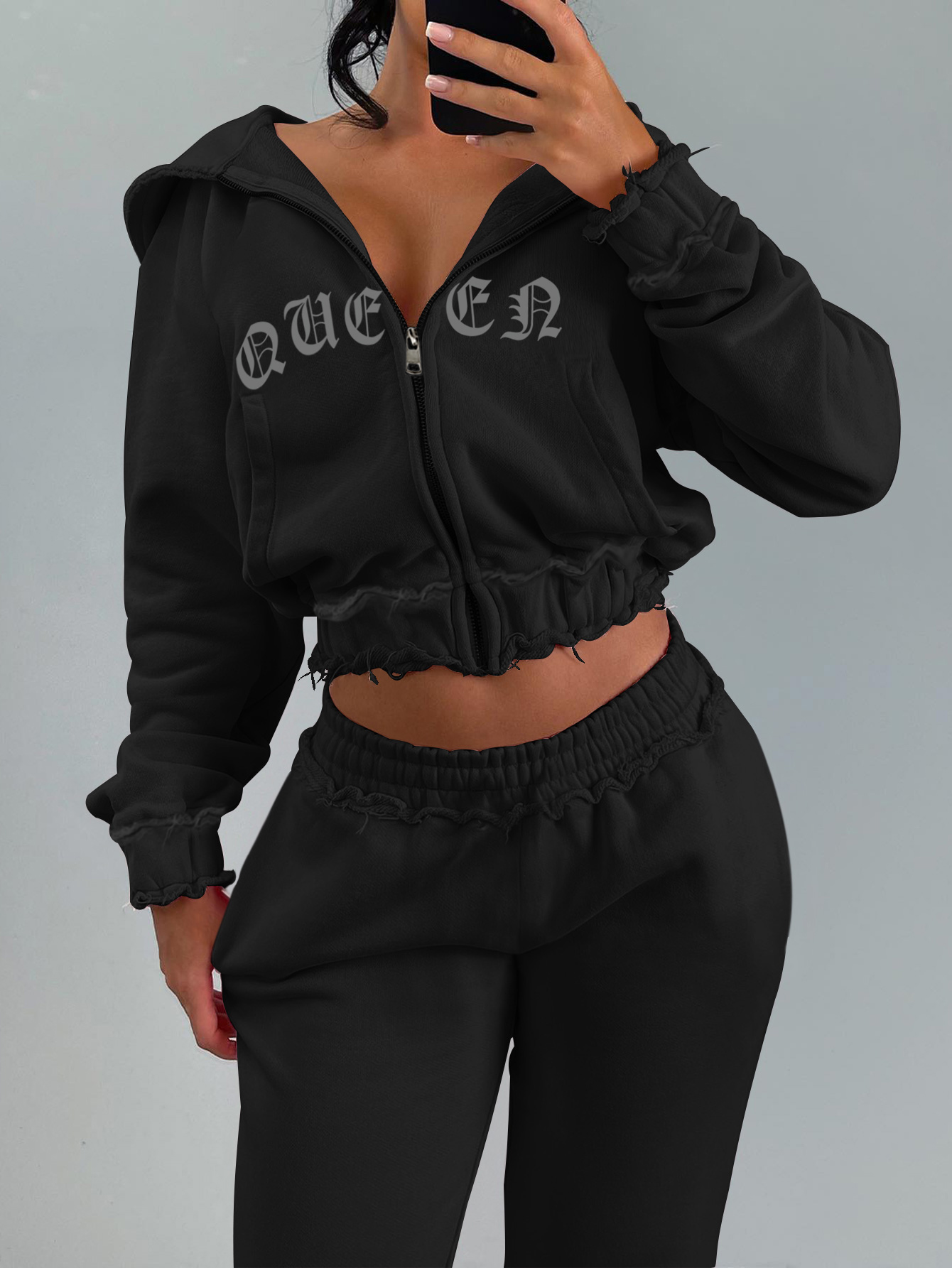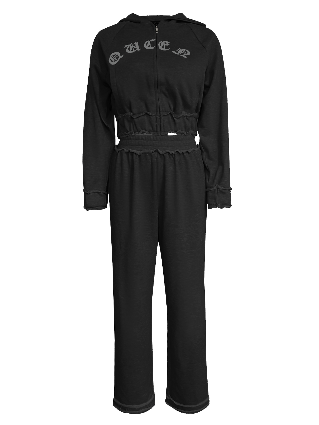 LW BASICS Casual Sweat Hooded Collar Letter Long Sleeve Two-piece Pants Set.