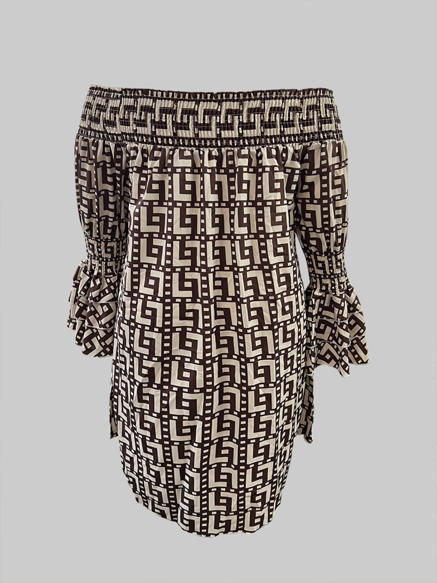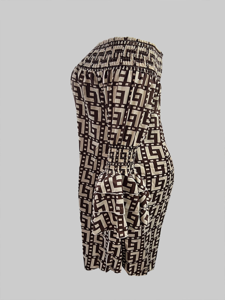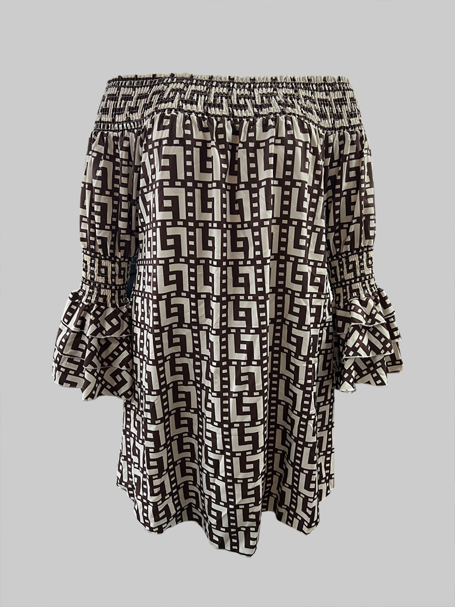 LW Plus Size Off The Shoulder Geometric Print Layered Cascading Dress.