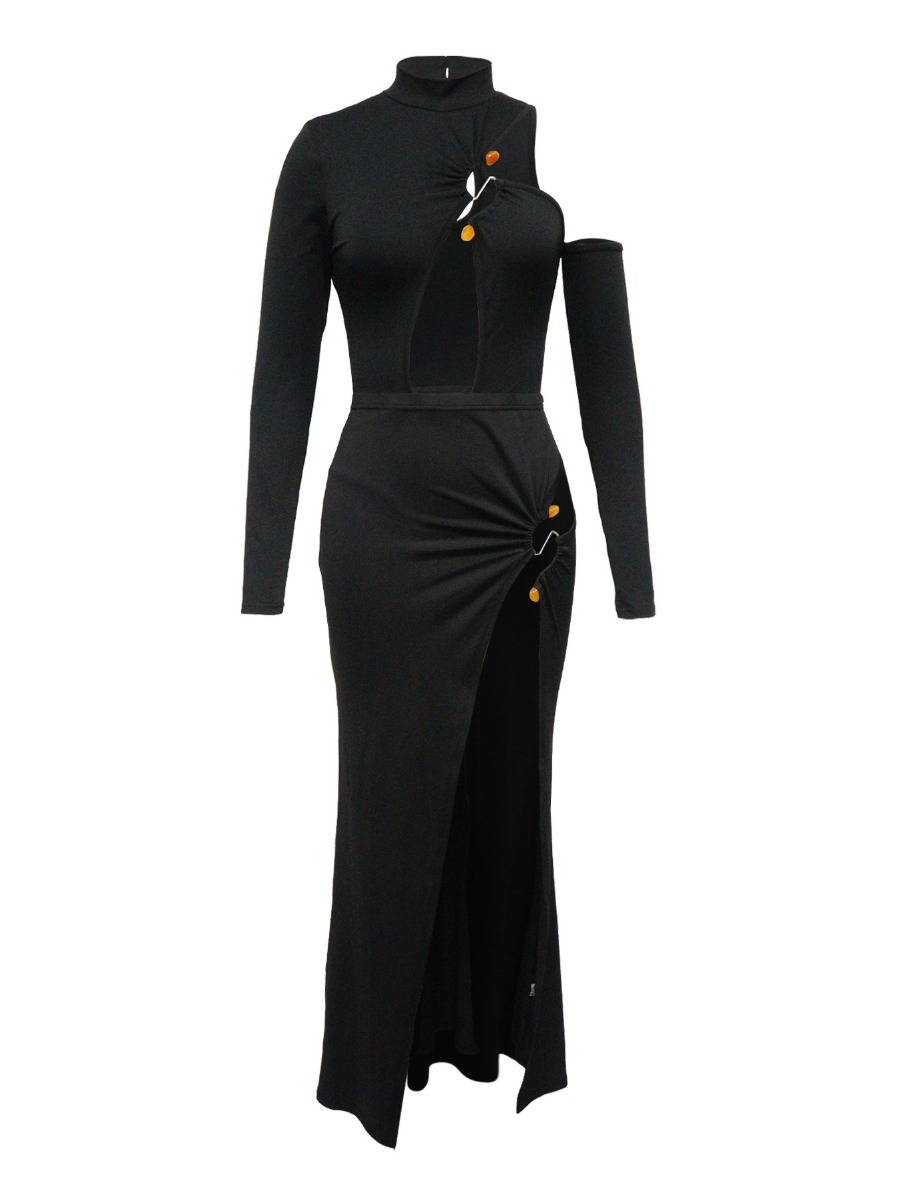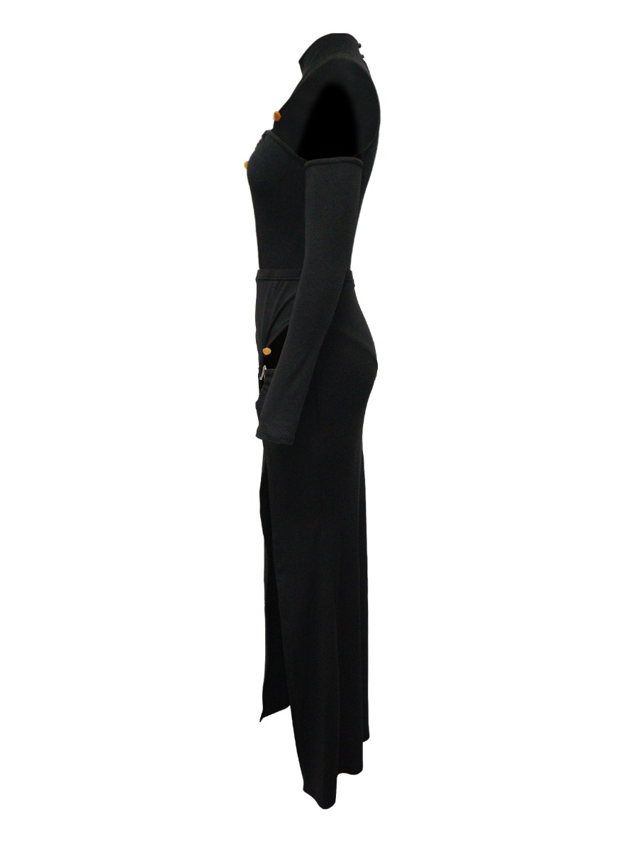 LW SXY Sxy Polyester Mock Neck Cut Out Solid Color Long Sleeve Two-piece Skirt Set