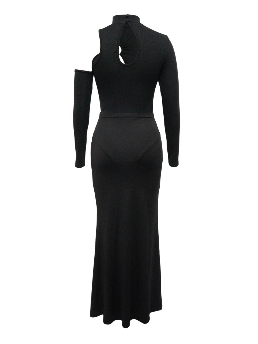 Buy LW SXY Sxy Polyester Mock Neck Cut Out Solid Color Long Sleeve Two-piece Skirt Set for $24.59 at @ Lovelywholesale.com