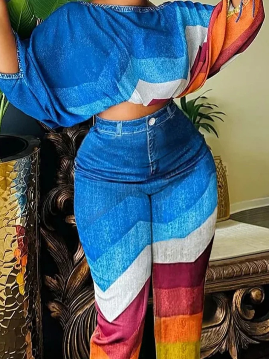 LW Plus Size Pattern Color Block Two-piece Pants Set.