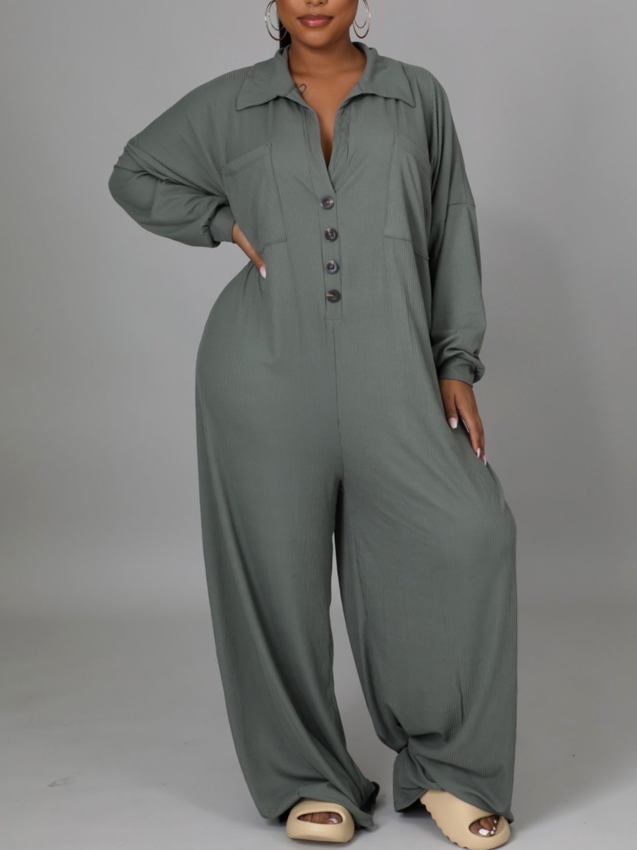 Buy LW Plus Size Dropped Shoulder Pocket Design Loose Jumpsuit for $23.69 at @ Lovelywholesale.com