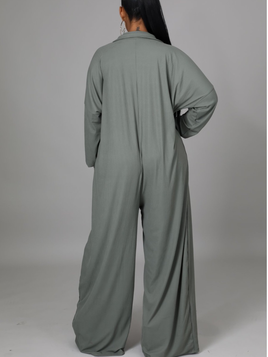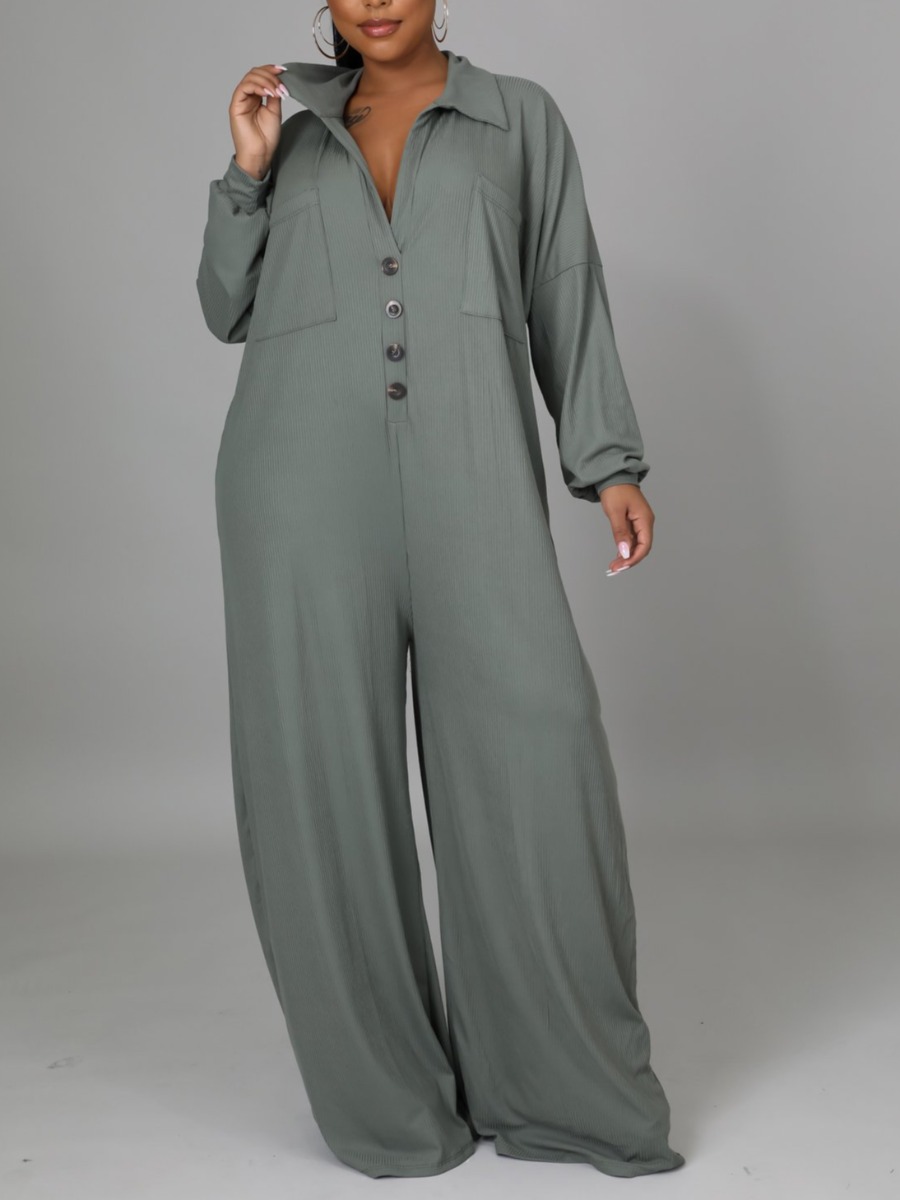 LW Plus Size Dropped Shoulder Pocket Design Loose Jumpsuit.