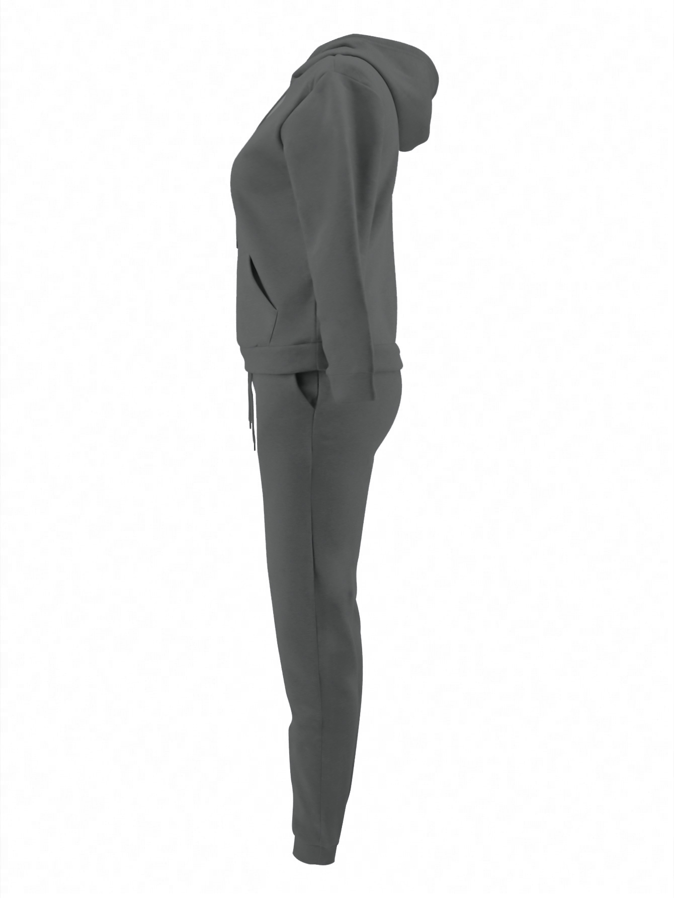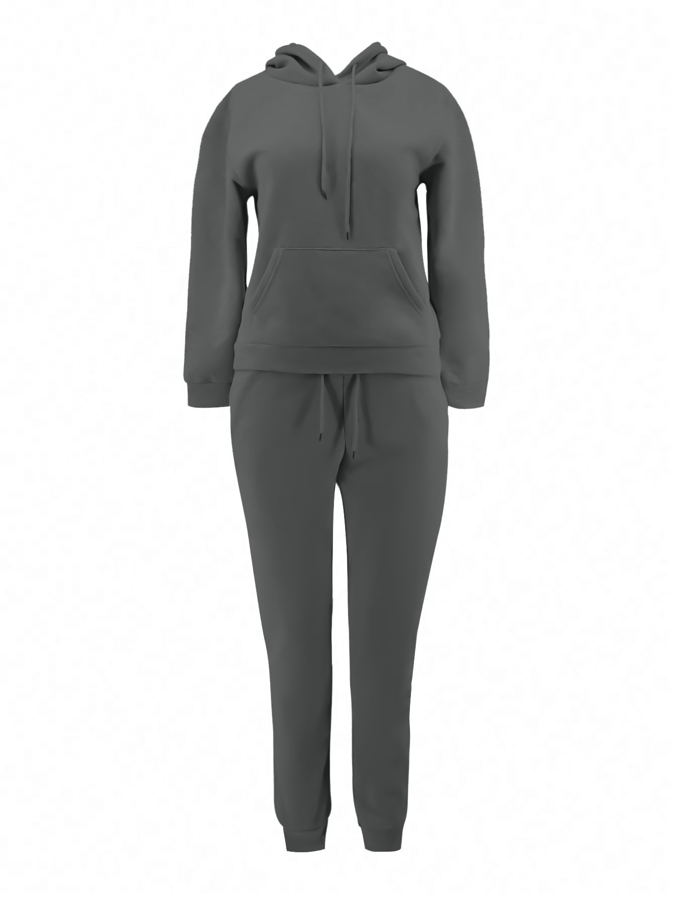 LW Casual Sweat Hooded Collar Lace Up Solid Color Long Sleeve Two-piece Pants Set.