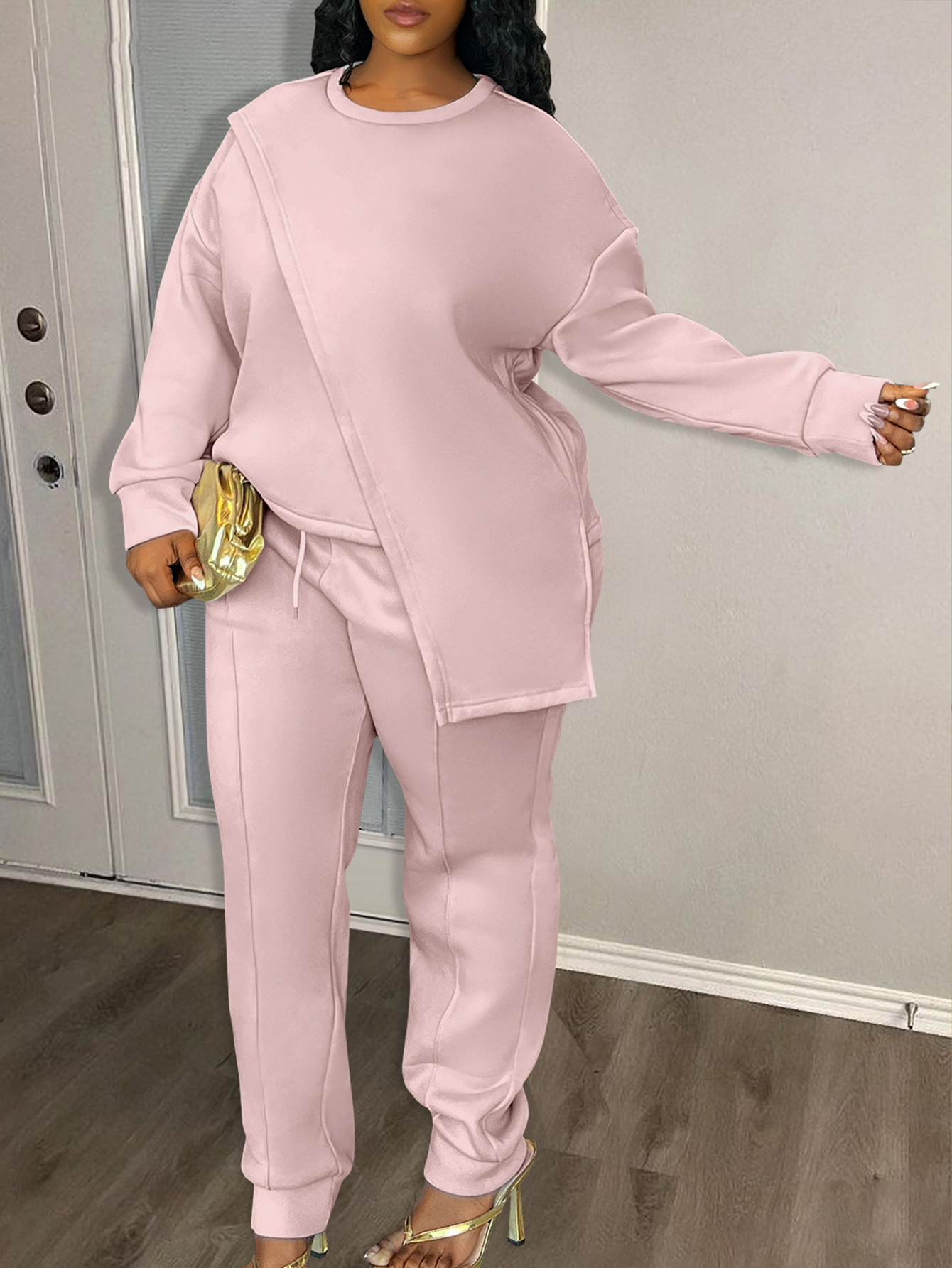 Buy LW BASICS Plus Size Solid Color Two-piece Pants Set for $26.09 at @ Lovelywholesale.com