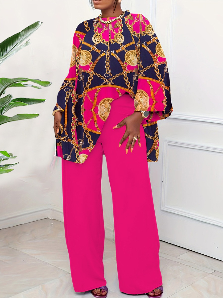 Buy LW Plus Size Pattern Color Block Two-piece Pants Set for $27.29 at @ Lovelywholesale.com