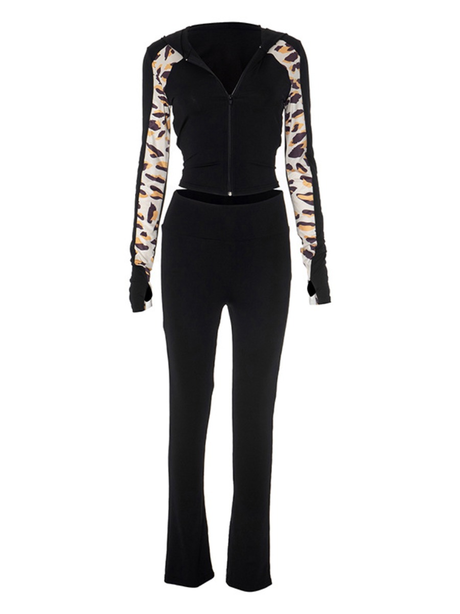 Buy LW Casual Polyester Hooded Collar Patchwork Leopard Print Long Sleeve Two-piece Pants Set for $19.19 at @ Lovelywholesale.com