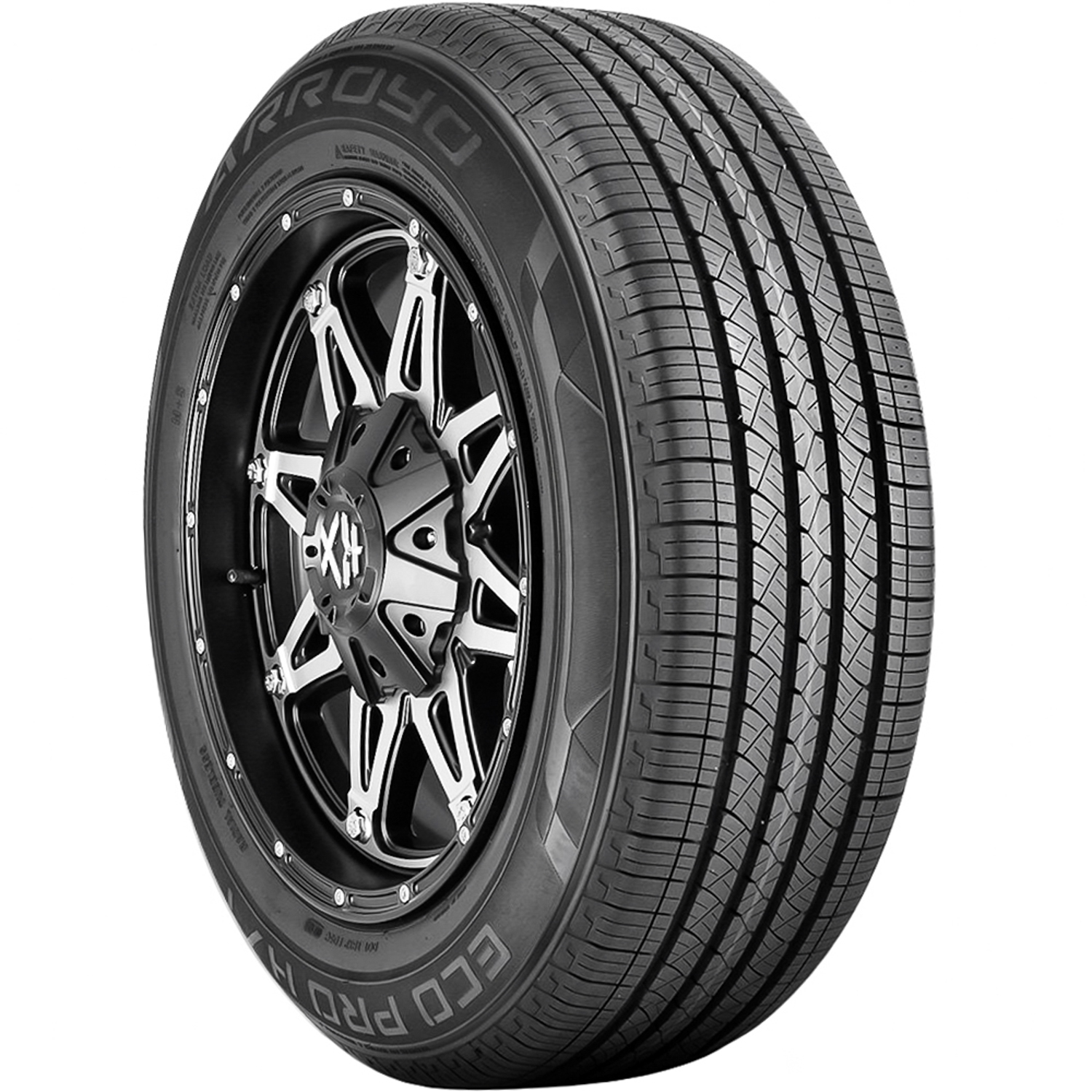 Arroyo Eco Pro H/T. FEATURES AND BENEFITS: All weather traction; Enhanced controllability; Longer lasting tread life; Improved load durability; . OVERVIEW: The Arroyo Eco Pro H/T is a highway terrain all season tire manufactured for passenger vehicles and SUVs. Arroyo offers a 50,000 mile treadwear warranty with this model.The model's all weather traction is guaranteed with the all season tire compound and the symmetric tread design. They firmly grip the road surface in dry, wet and winter weather and guarantee a safer year round performance. The tire's compound maintains its flexibility even in colder temperatures, while the tread is capable of finding good grip on all weather surfaces. The four wide circumferential grooves actively resist hydroplaning by dispersing water and slush away from the tire's footprint for a more secure drive.The tire's controllability is also improved. The tread design's three continuous center ribs upgrade the driving stability, while the rigid shoulder tread block sequence boosts the steering responsiveness. As a result, the tire is stabilized against the driving forces affecting it during the drive. Its steering becomes swift and precise in its response to the driver's commands, allowing the driver to confidently control the tire in all conditions. The rigid shoulder tread blocks also enhance the cornering and maneuvering capability with the additional biting edges they promote.The tire's tread design extends its usability. The symmetric tread design's deep tread grooves evenly distribute the forces of acceleration, cornering and braking across the tread area. This actively prevents irregular tread wear formations, extending the tread life and tire usability. The special tread design also features a variable pitch design that boosts the comfort levels. The five-degree pitch variation negates the road noise generated while the tires are in motion. This decreases the road noise heard in the vehicle's cabin while the tires are in motion.The Eco Pro H/T has excellent load carrying ability. The optimized pitch width and rib design enhance the tire's road contact significantly, while the shoulder grooves manage to reduce the heat buildup. The better road contact and lower levels of heat buildup improve the model's load capability and durability. The tire maintains its optimal shape under the load pressure, allowing it to perform to its best capability in all conditions. Manufacturers recommend changing tires every 10 years. As long as tires are properly stored before they are sold, the year of their manufacture will not shorten their service life.