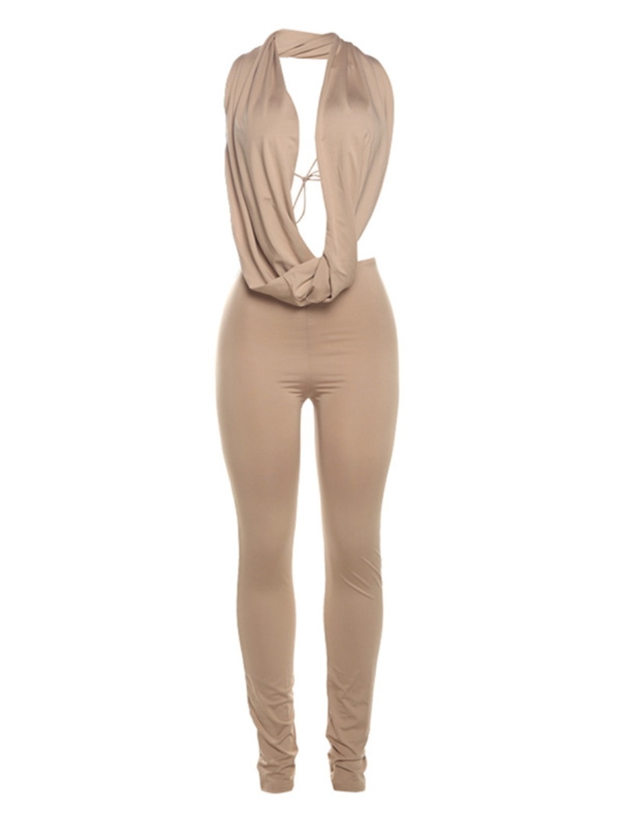 LW SXY Bandage Design Solid Color Jumpsuit.