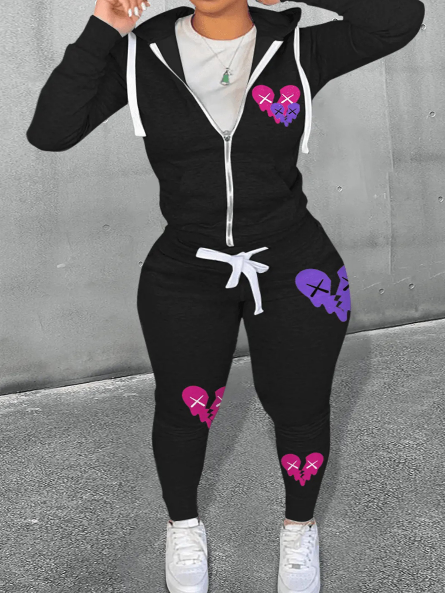 Buy LW Plus Size Broken Heart Print Kangaroo Pocket Tracksuit Set for $18.29 at @ Lovelywholesale.com