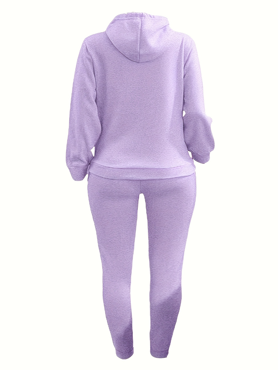 Buy LW BASICS Plus Size Fleece Hooded Collar Kangaroo Pocket Tracksuit Set for $17.69 at @ Lovelywholesale.com
