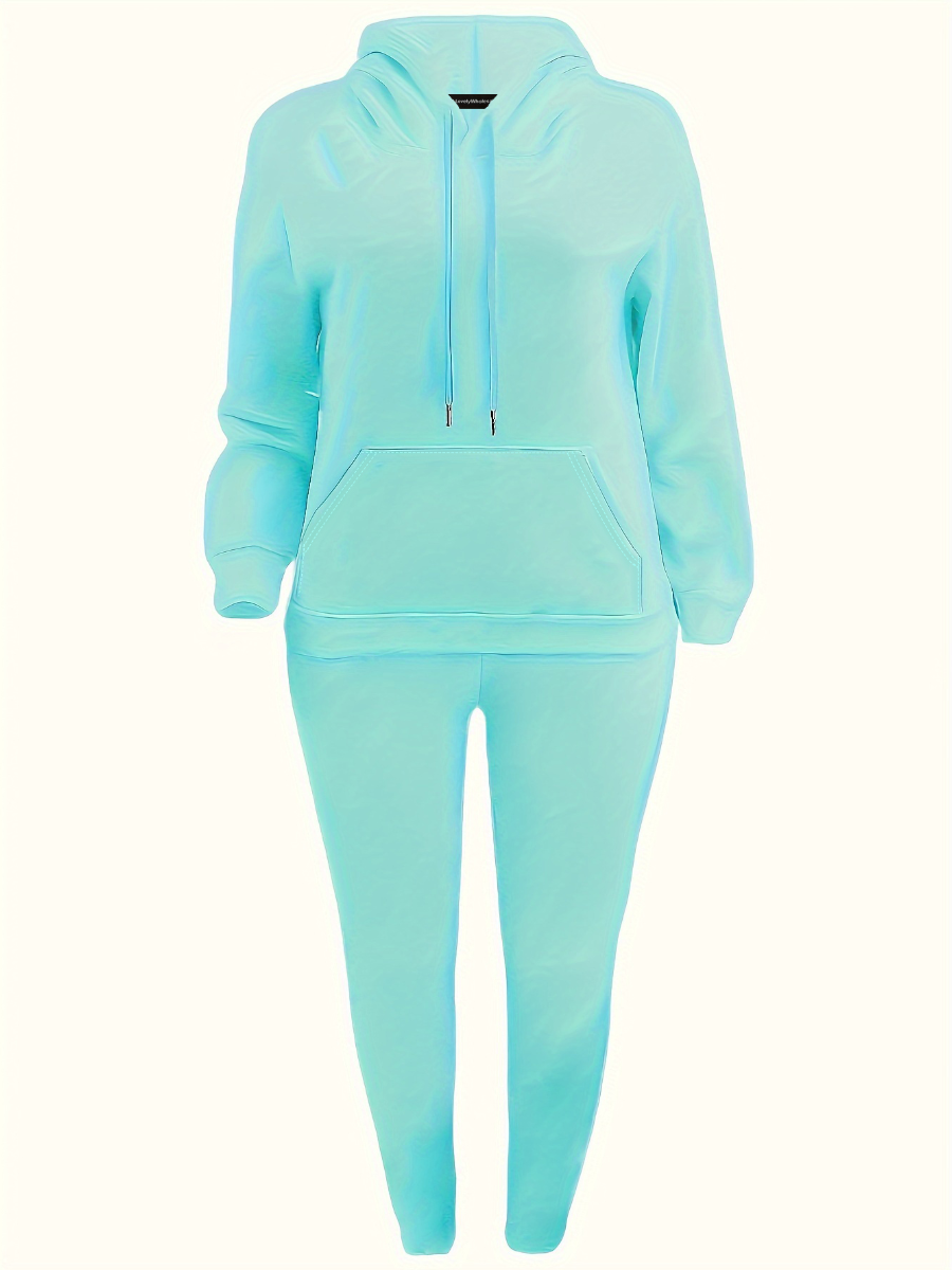 Buy LW BASICS Plus Size Fleece Hooded Collar Kangaroo Pocket Tracksuit Set for $17.69 at @ Lovelywholesale.com