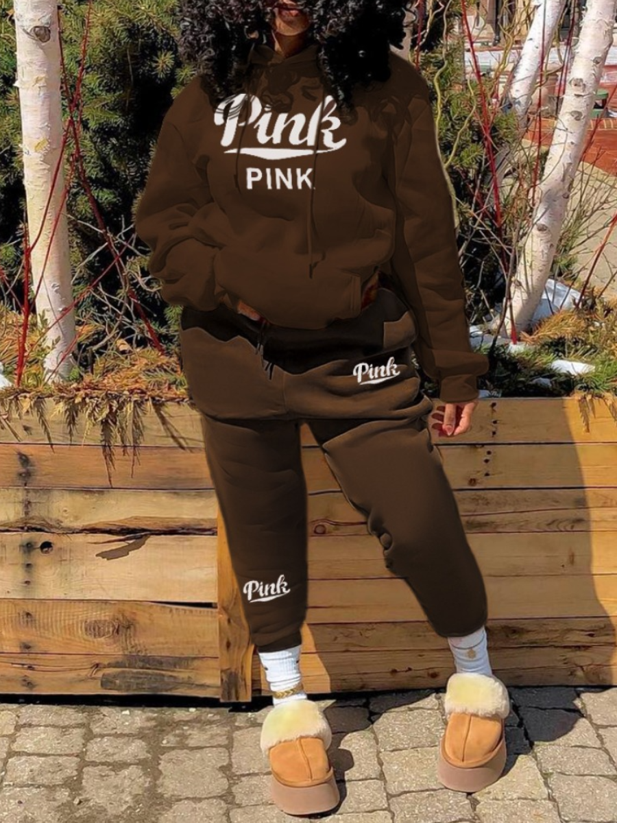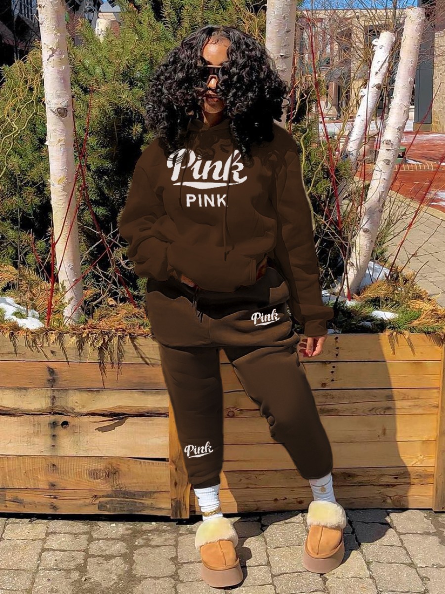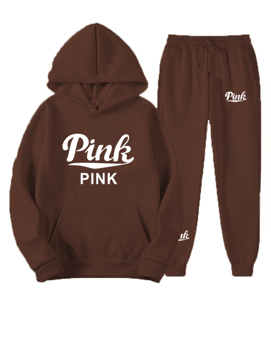 Buy LW Plus Size Pink Letter Print Kangaroo Pocket Tracksuit Set for $17.99 at @ Lovelywholesale.com