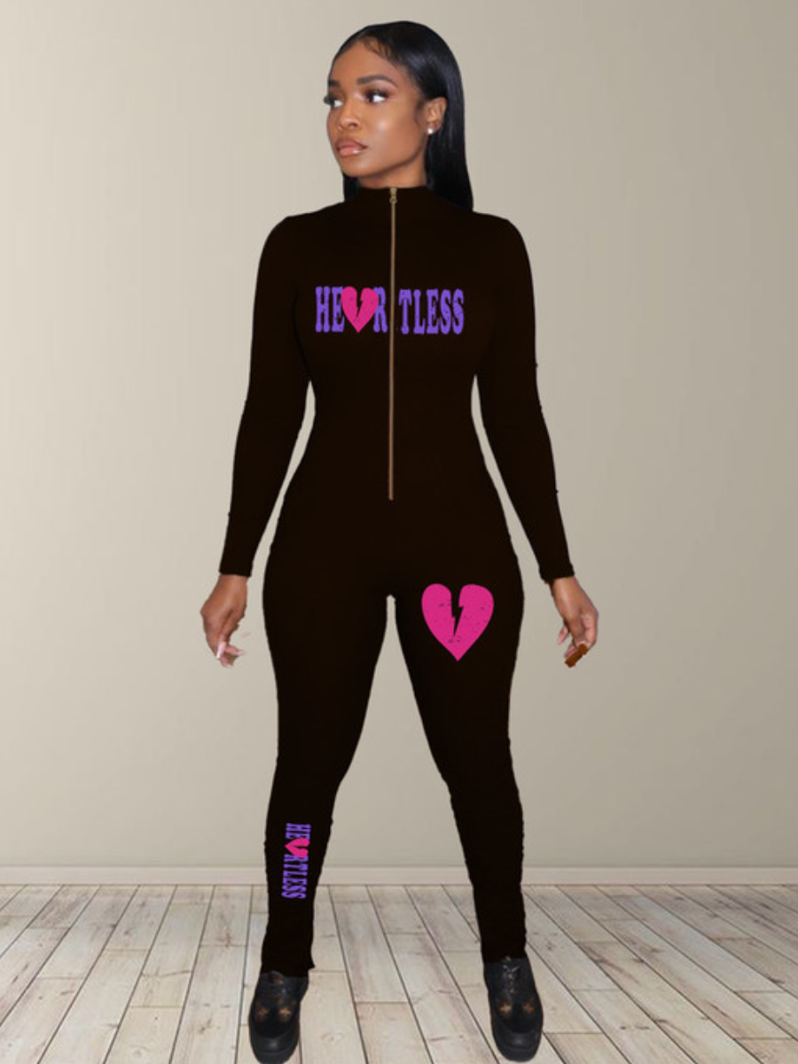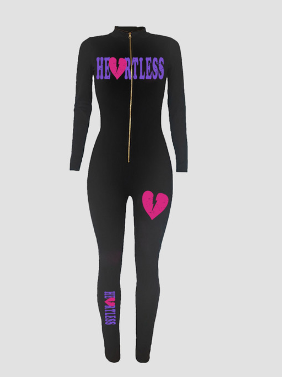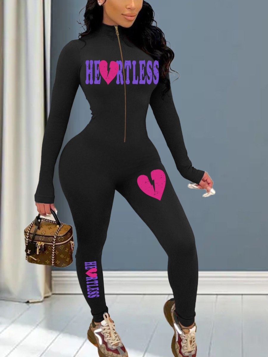 LW Broken Heart Letter Print Skinny Jumpsuit