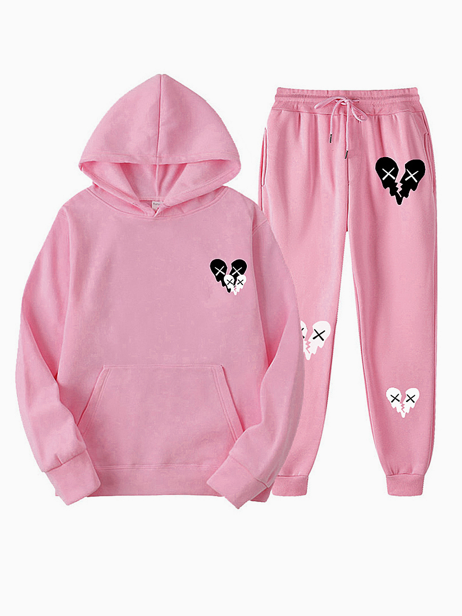 Buy LW Plus Size Broken Heart Print Kangaroo Pocket Tracksuit Set for $18.29 at @ Lovelywholesale.com