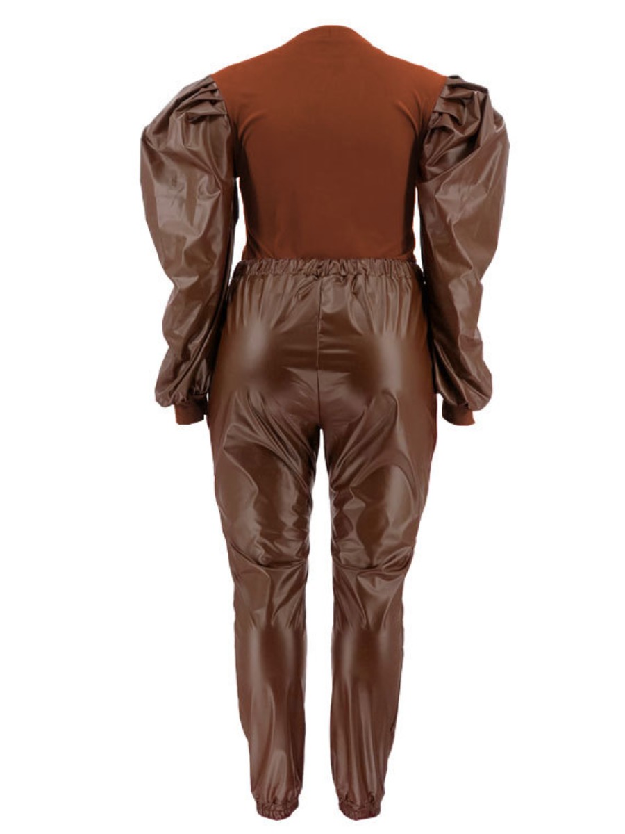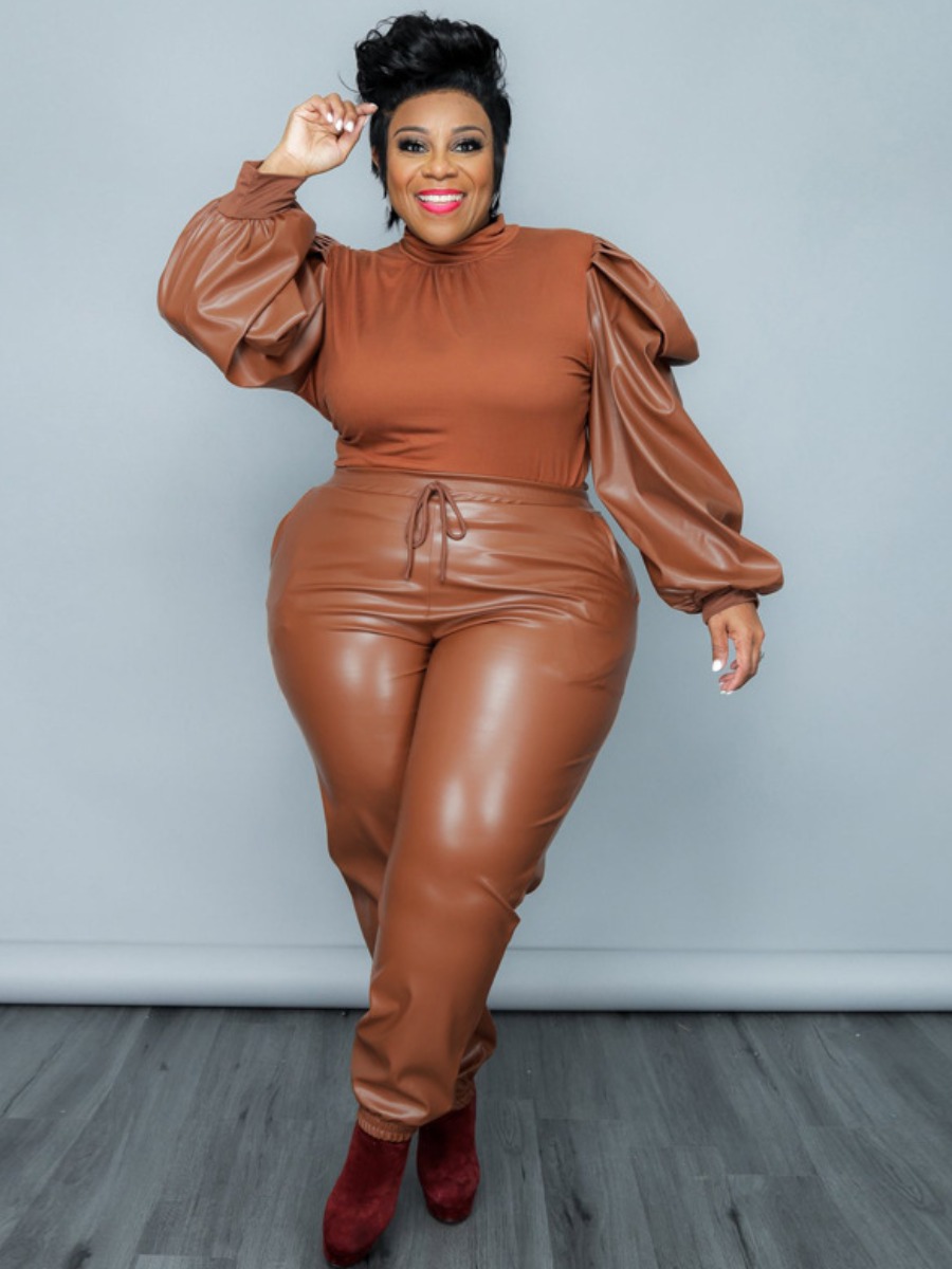 Buy LW Plus Size Faux Leather Puff Sleeve Drawstring Pants Set for $29.09 at @ Lovelywholesale.com
