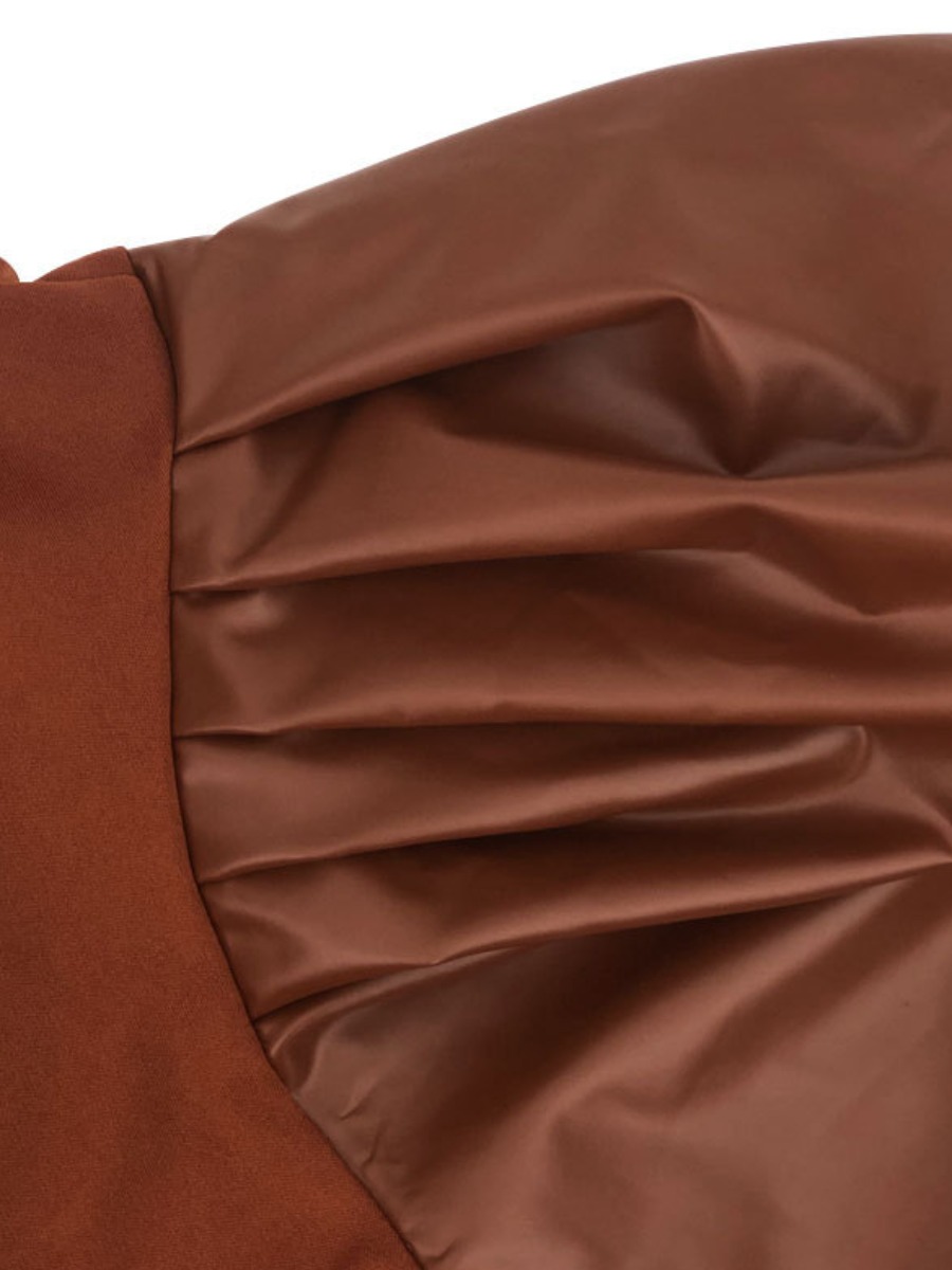 LW Plus Size Faux Leather Puff Sleeve Drawstring Pants Set.