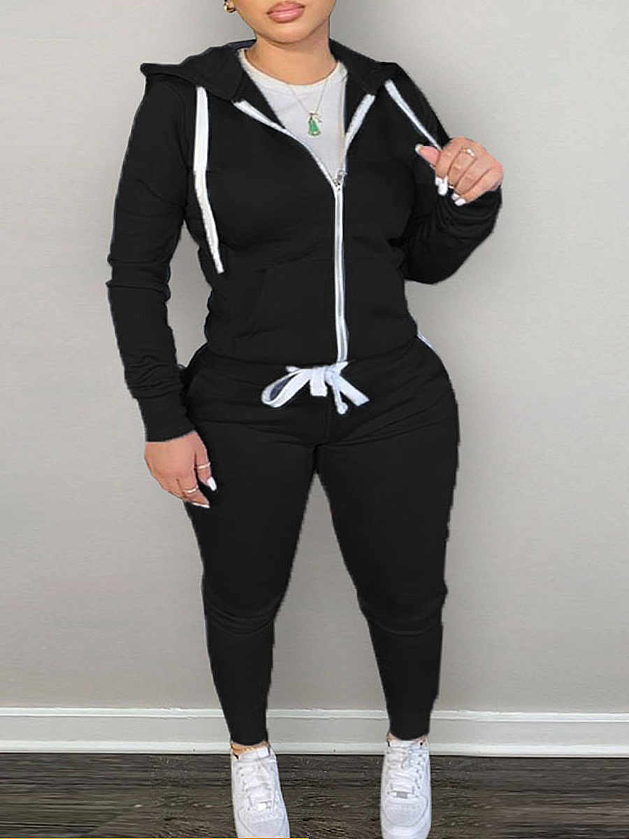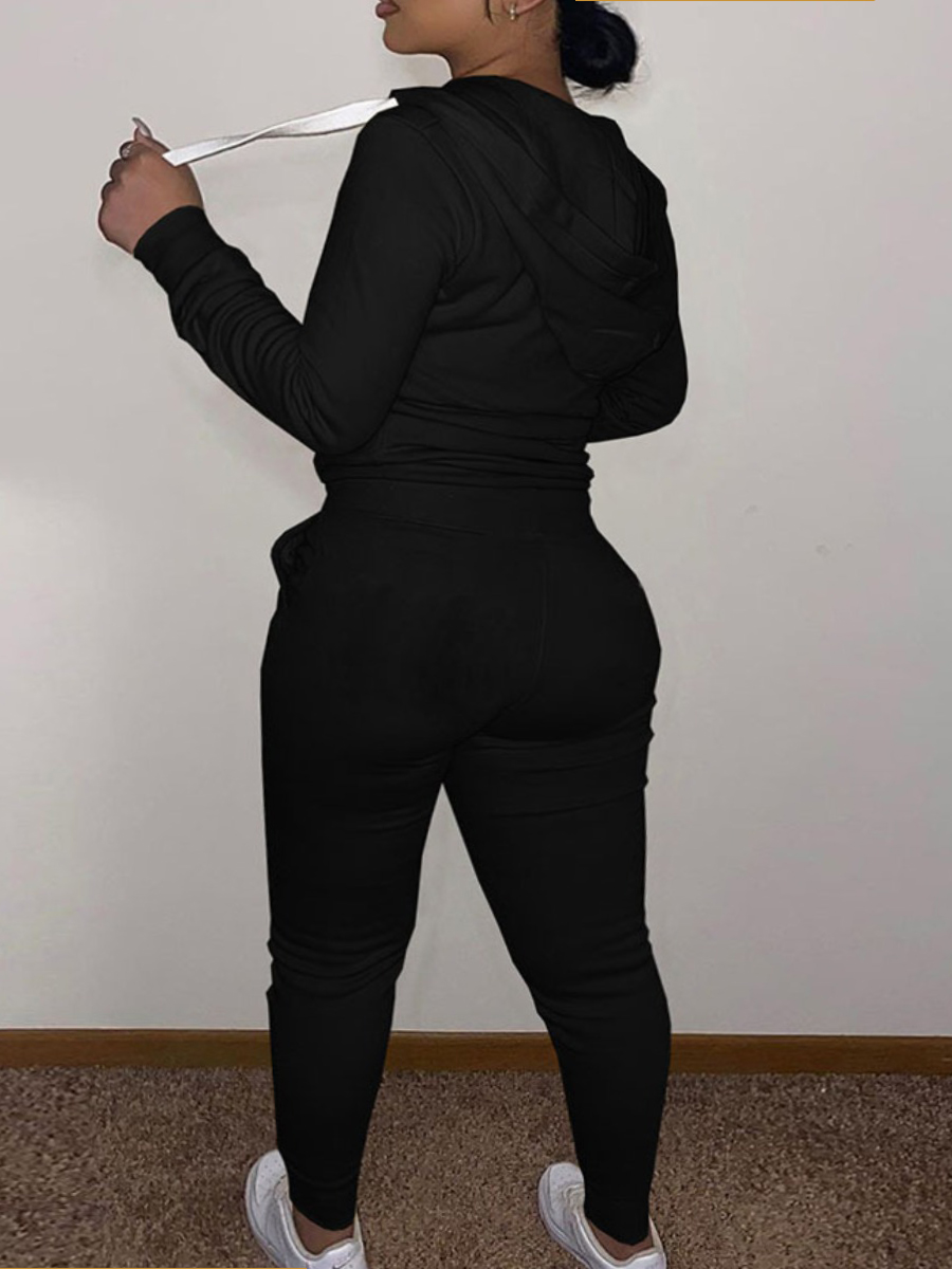 Buy LW BASICS Plus Size Letter Print Kangaroo Pocket Tracksuit Set for $18.89 at @ Lovelywholesale.com