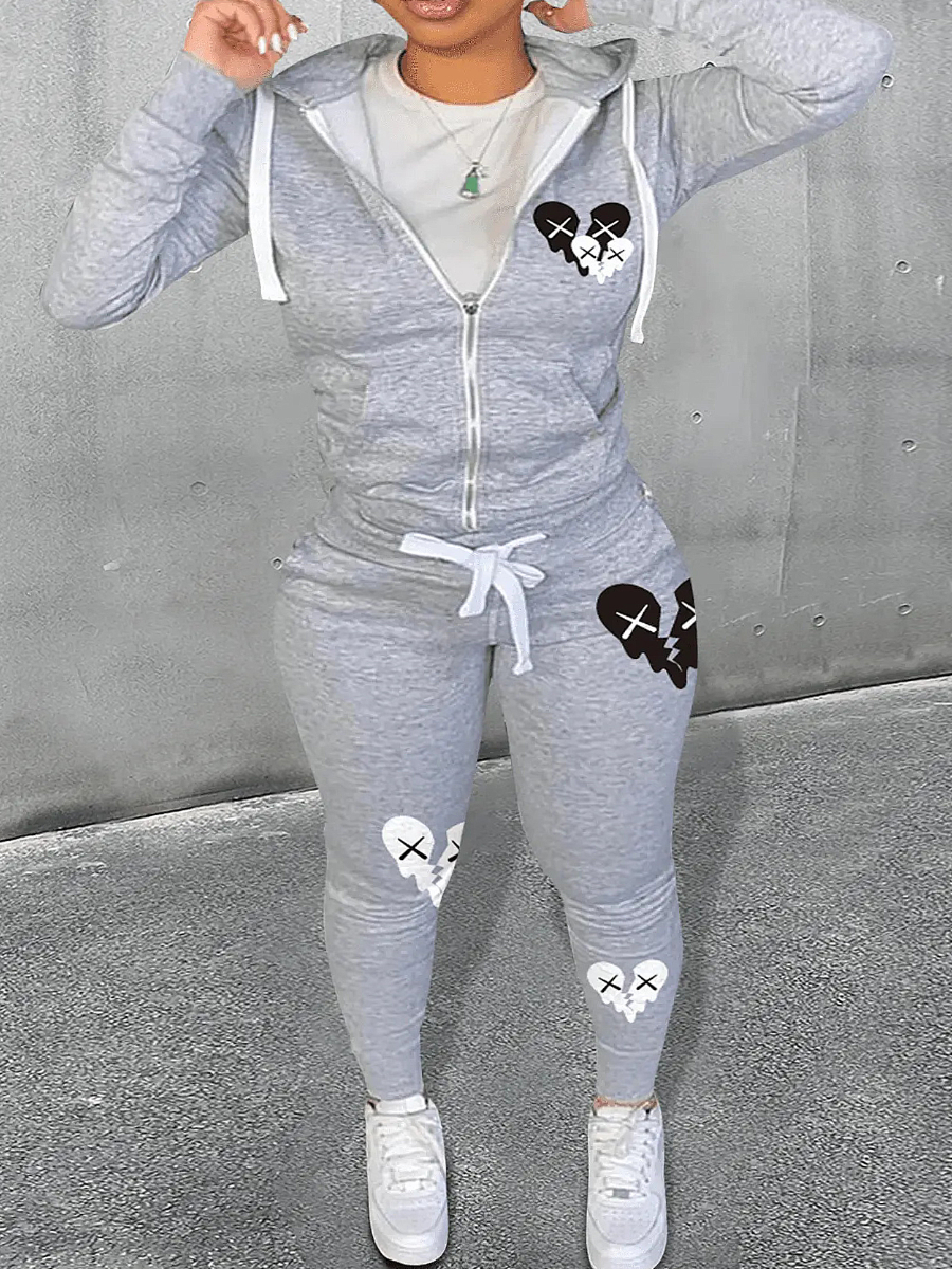 Buy LW Plus Size Broken Heart Print Kangaroo Pocket Tracksuit Set for $20.39 at @ Lovelywholesale.com