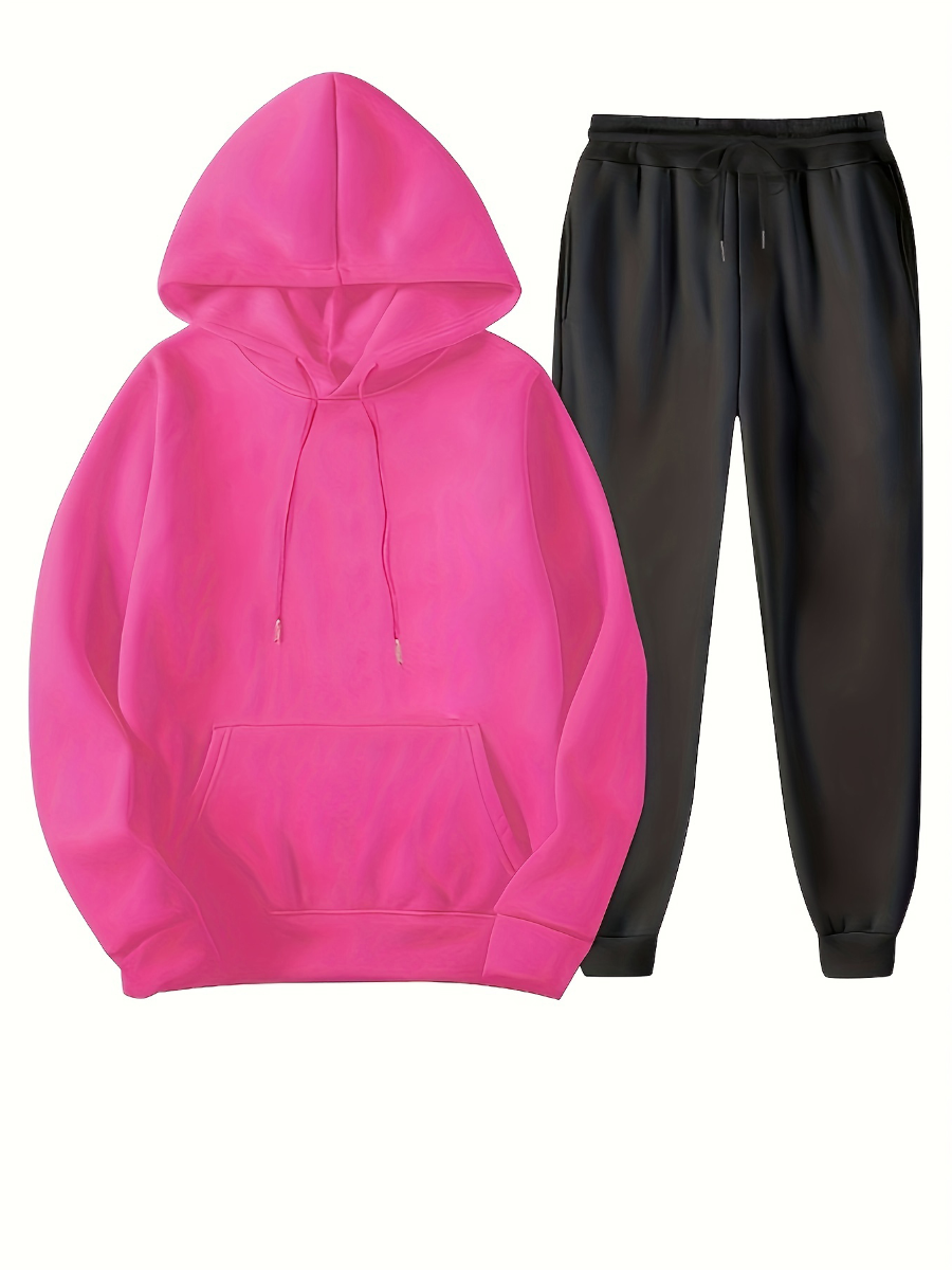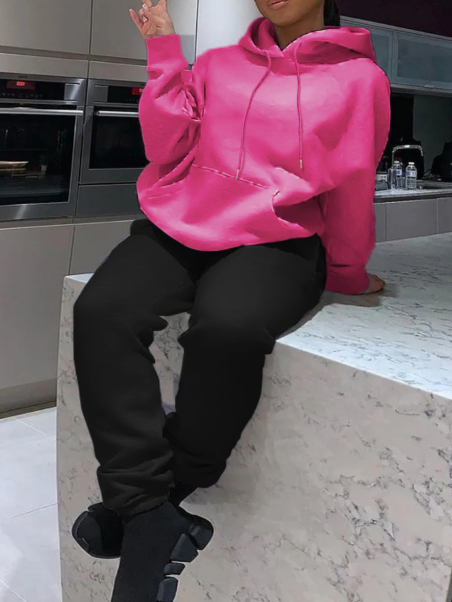 Buy LW BASICS Plus Size Hooded Collar Kangaroo Pocket Tracksuit Set for $17.39 at @ Lovelywholesale.com