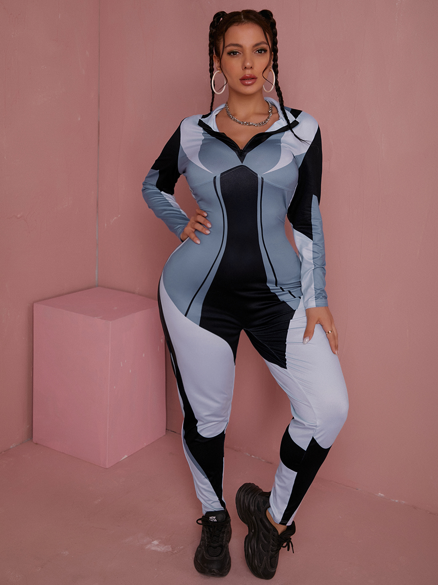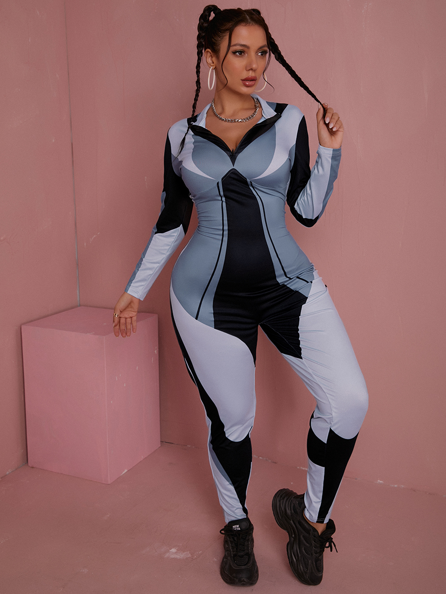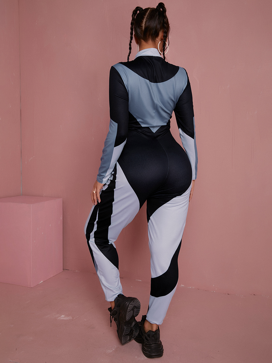 LW Half A Turtleneck Color-lump Jumpsuit.